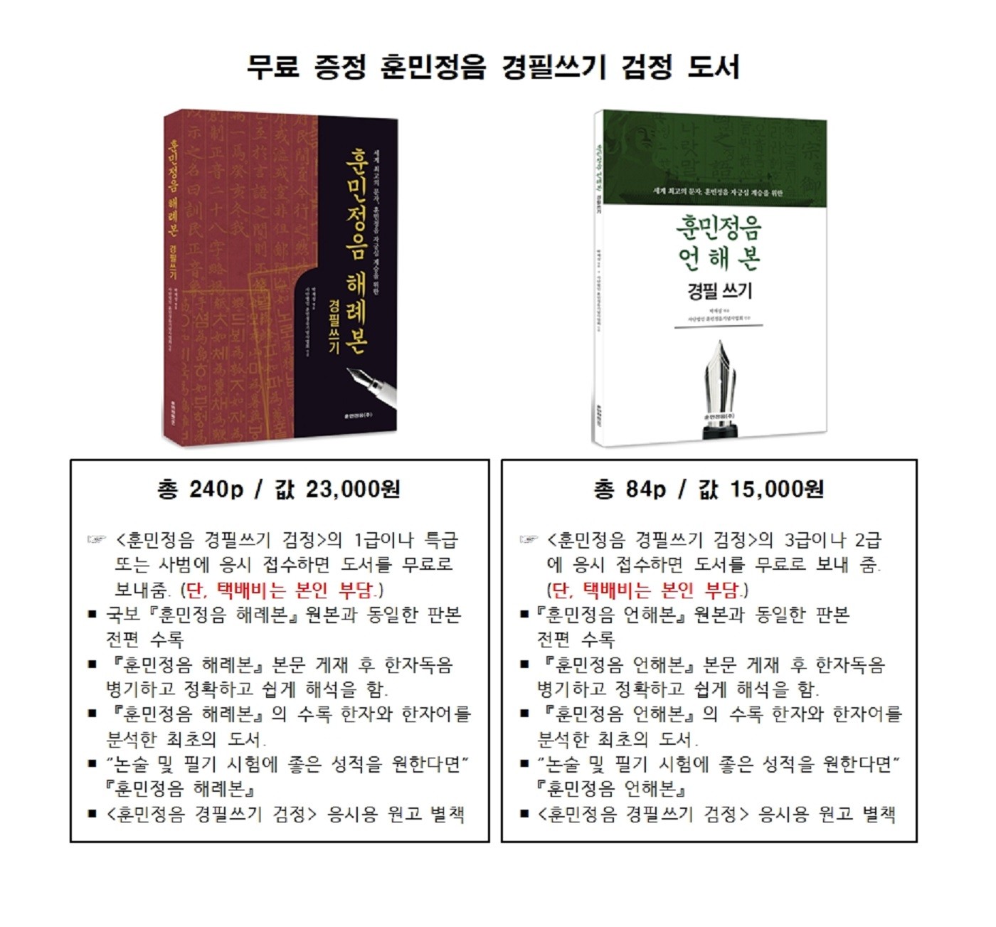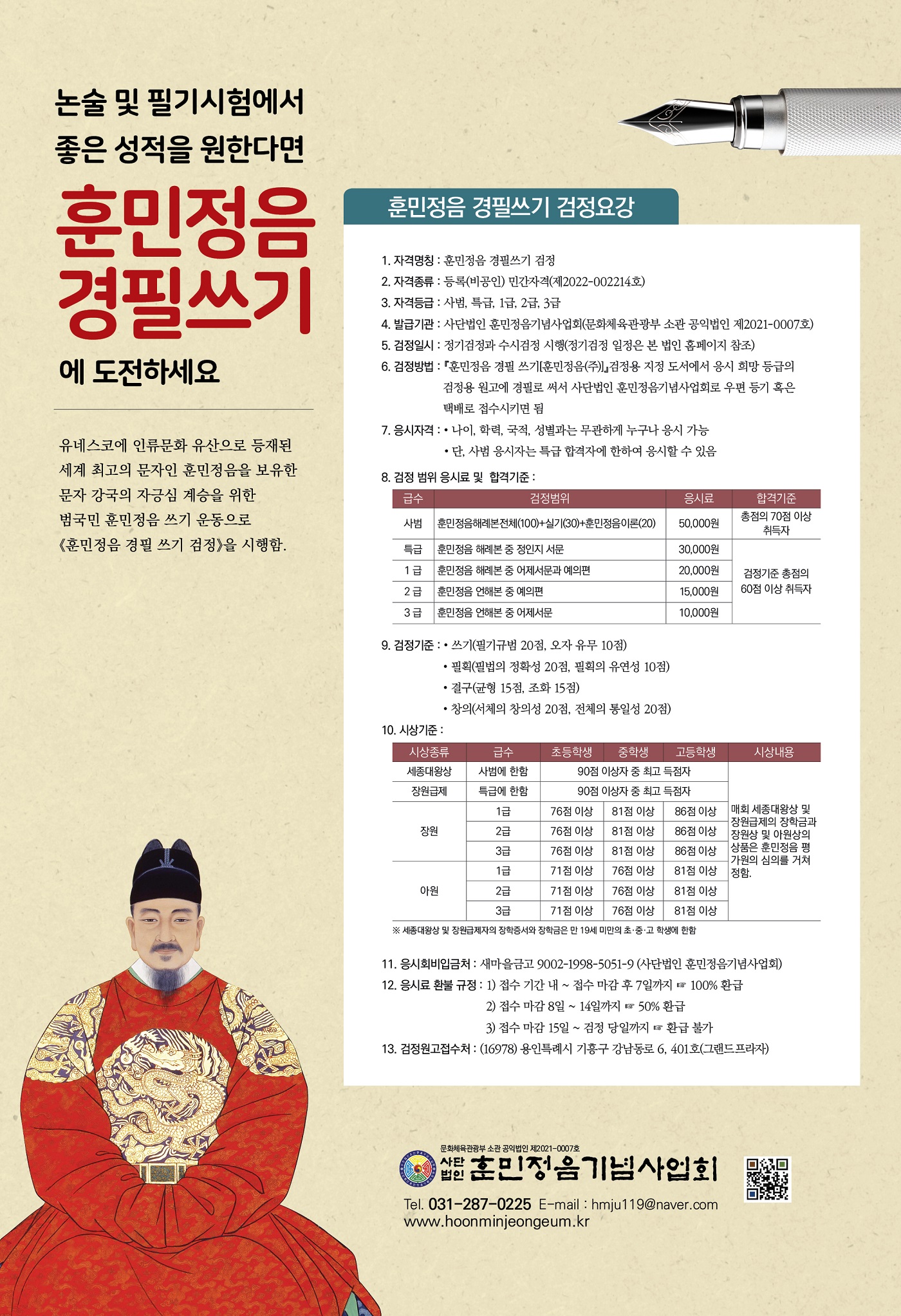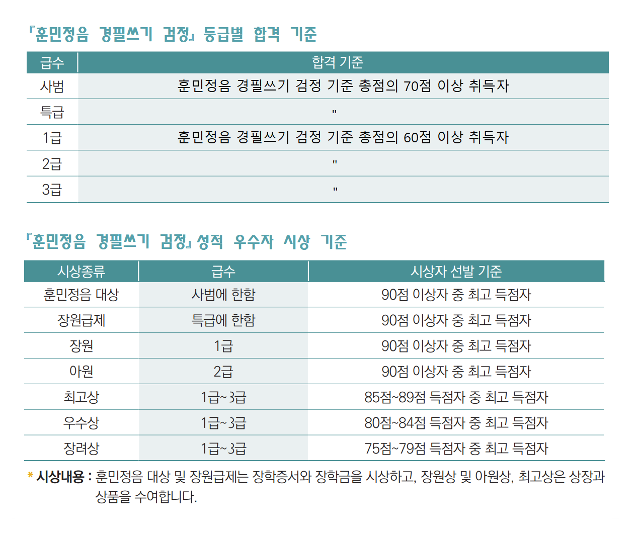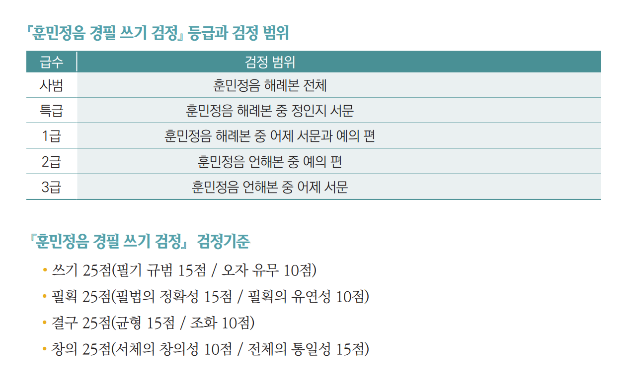 ③『훈민정음 경필쓰기 검정』등급별 응시료는 아래와 같다.