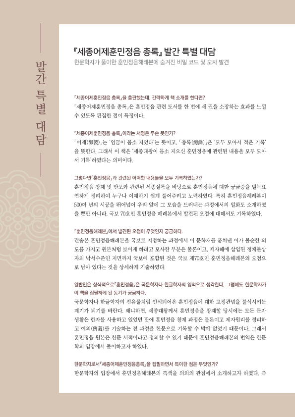2020년 11월 6일(금) 훈민정음탑건립조직위원회 박재성 상임조직위원장 <세종훈민정음총록>(주식회사 문자교육. 정가 110,000원) 발간
