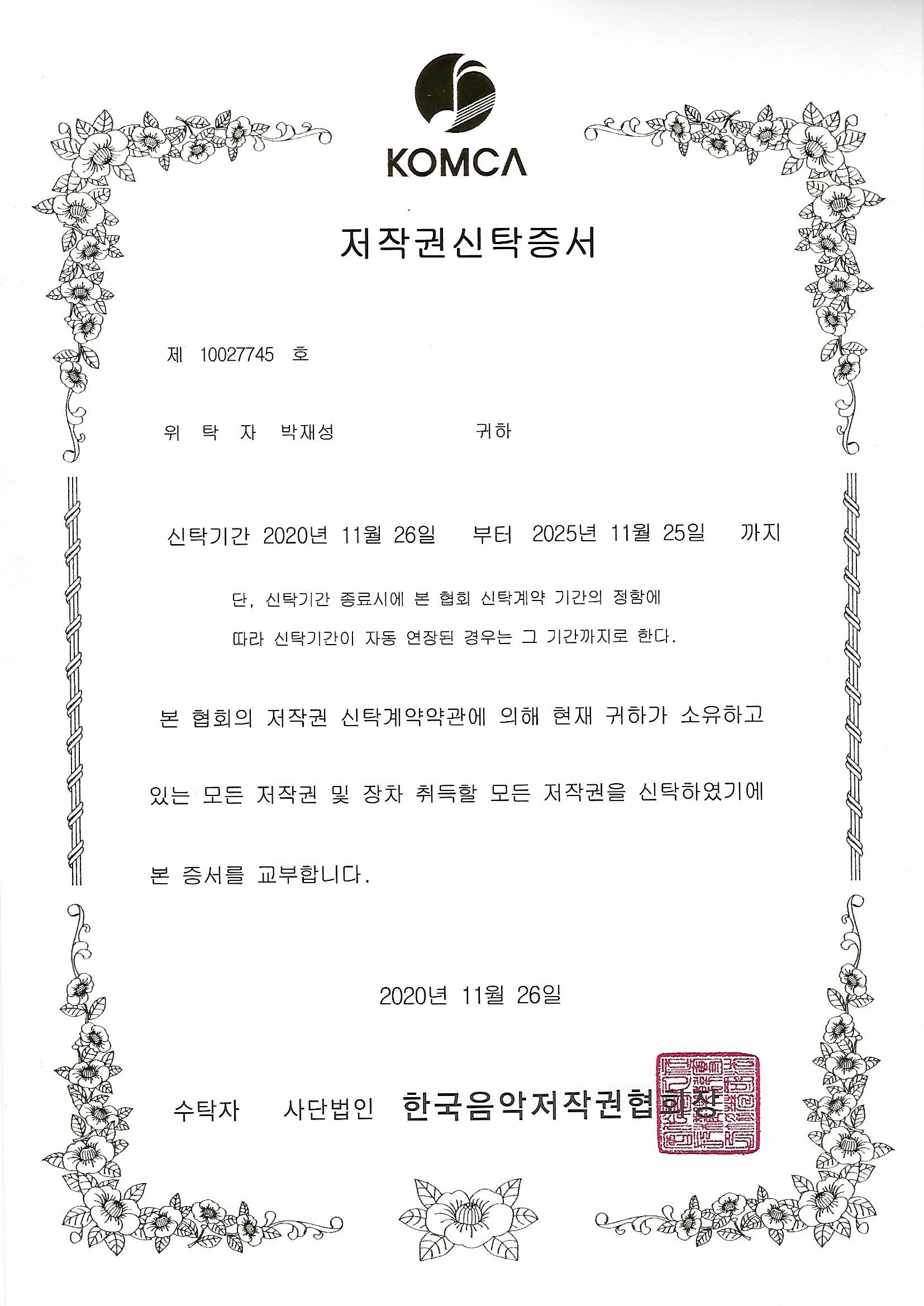 훈민정음 28자 작사자곡 한국음악저작권협회 등록