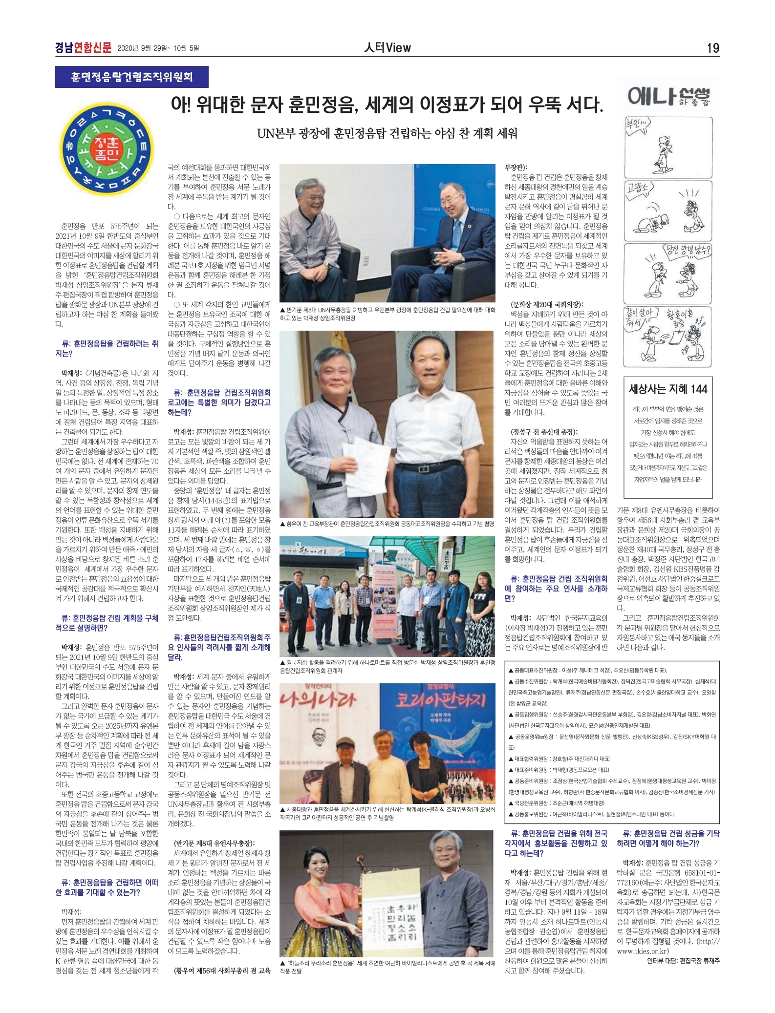 훈민정음탑건립조직위원회 전면 특집보도