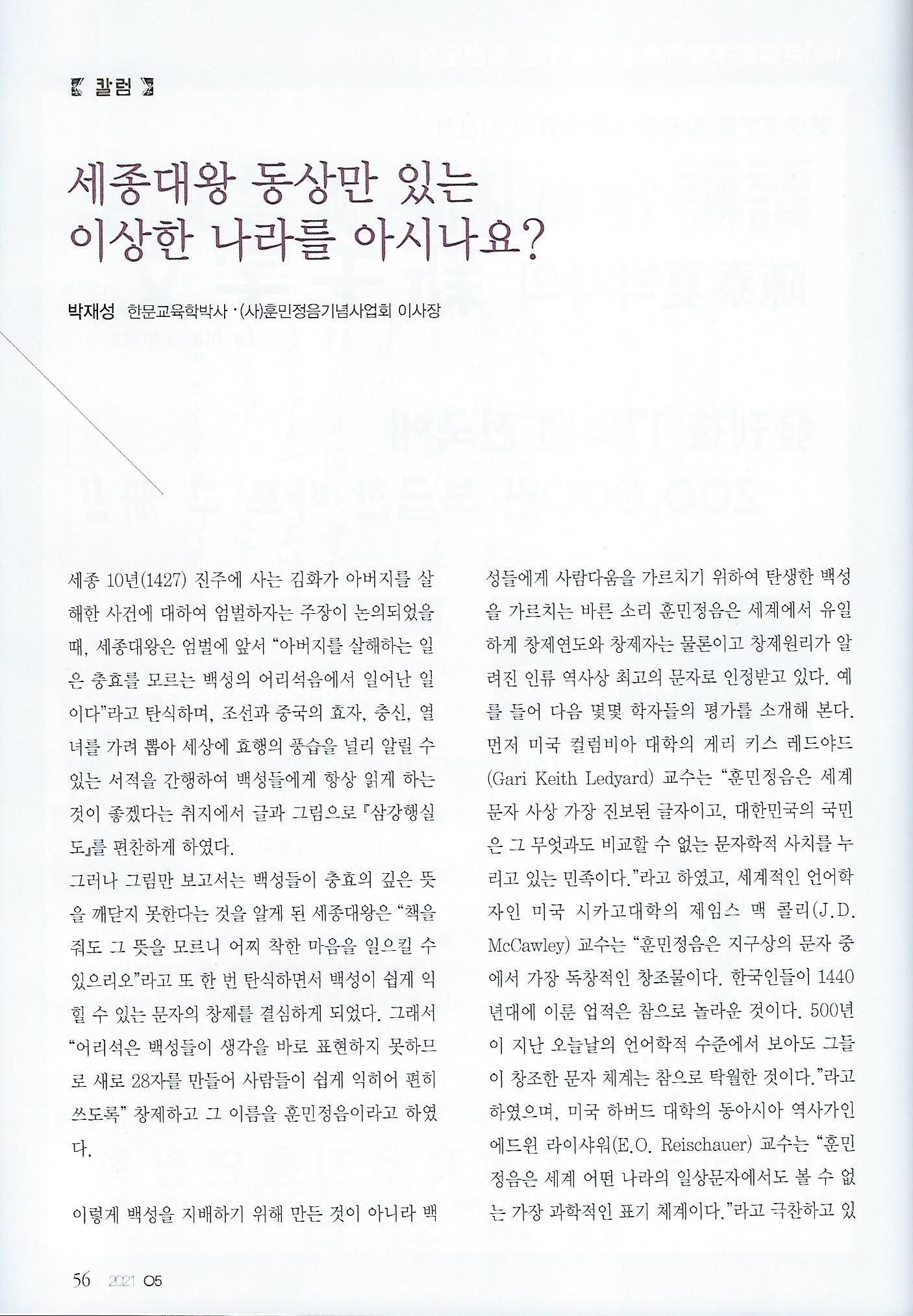 월간서예문인화-세종대왕 동상만 있는 이상한 나라