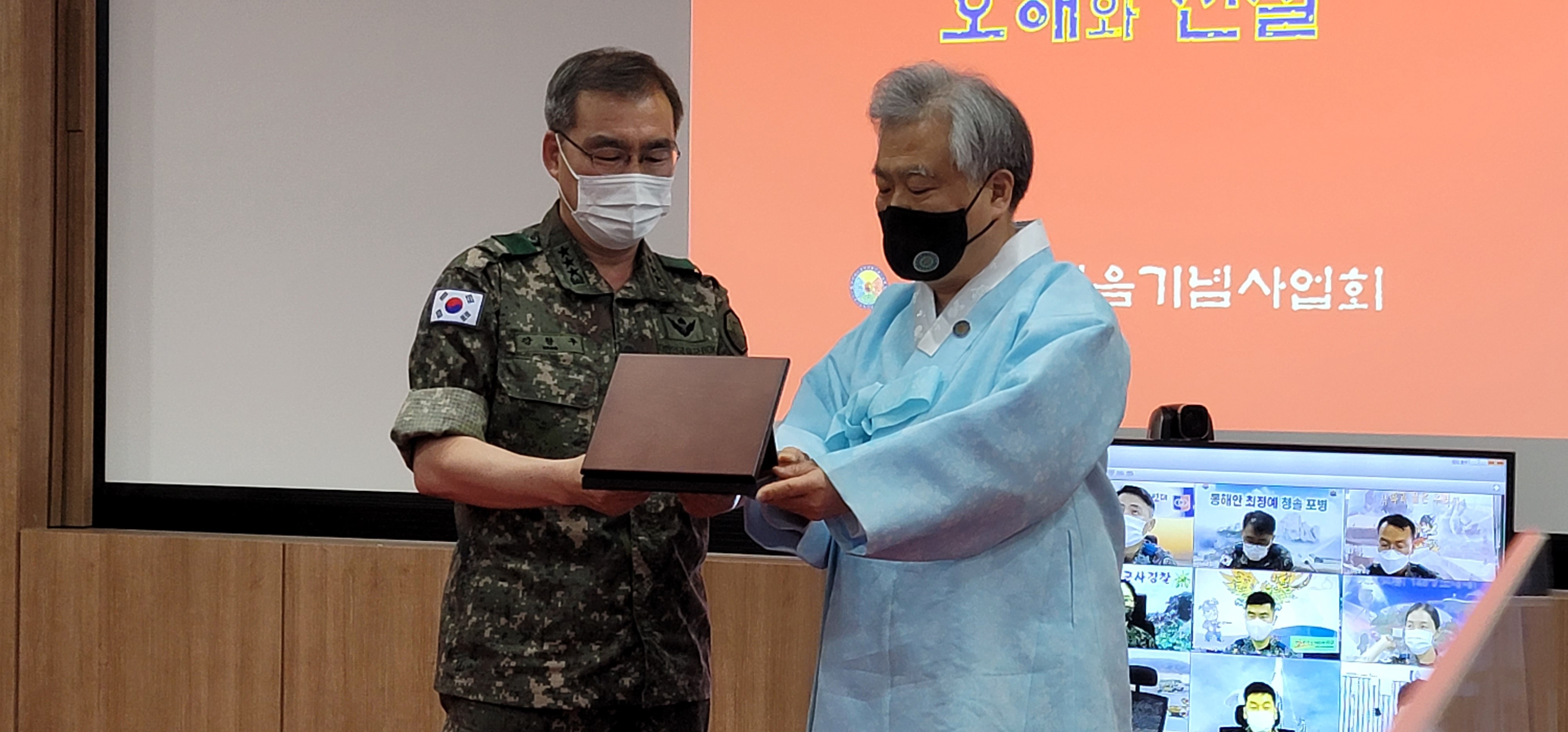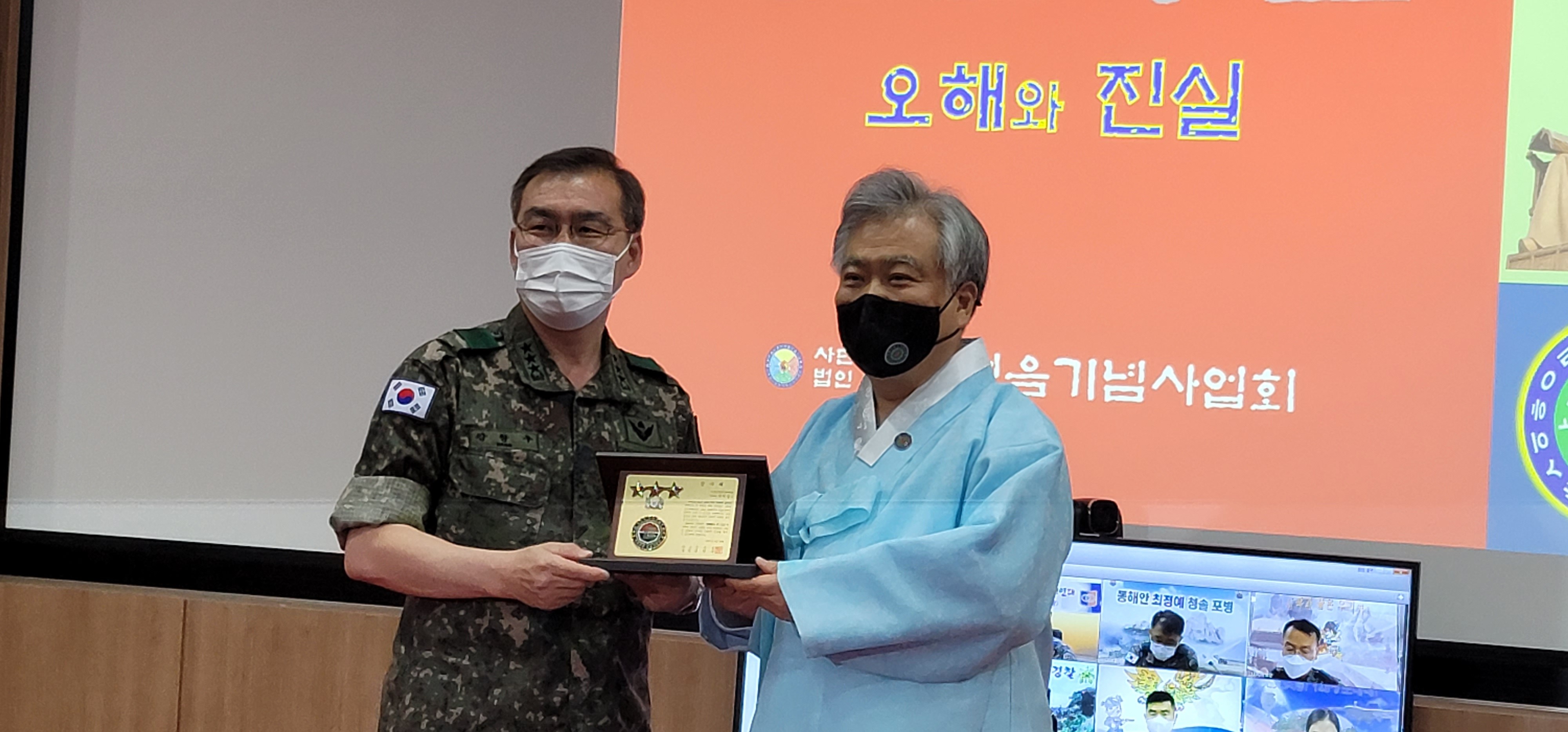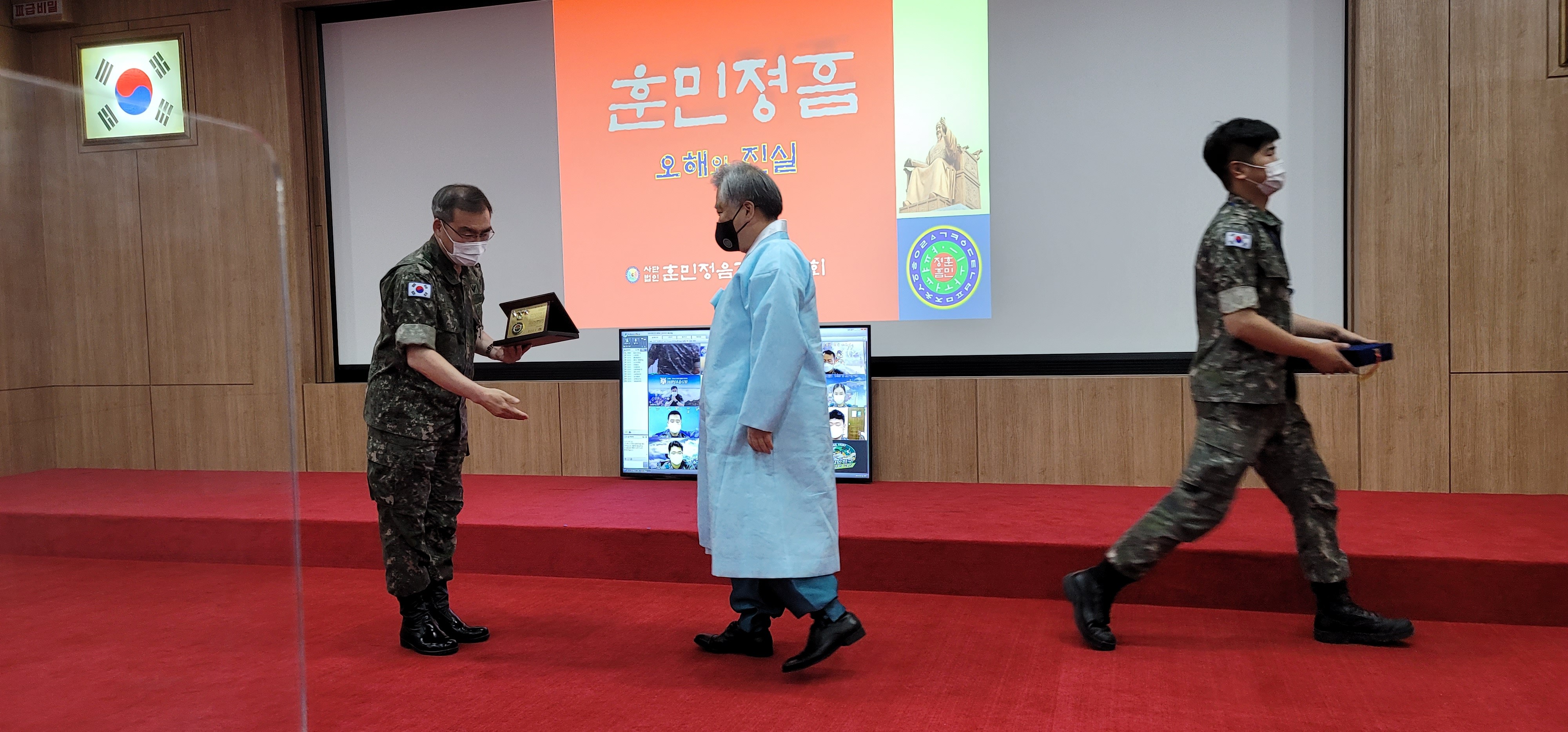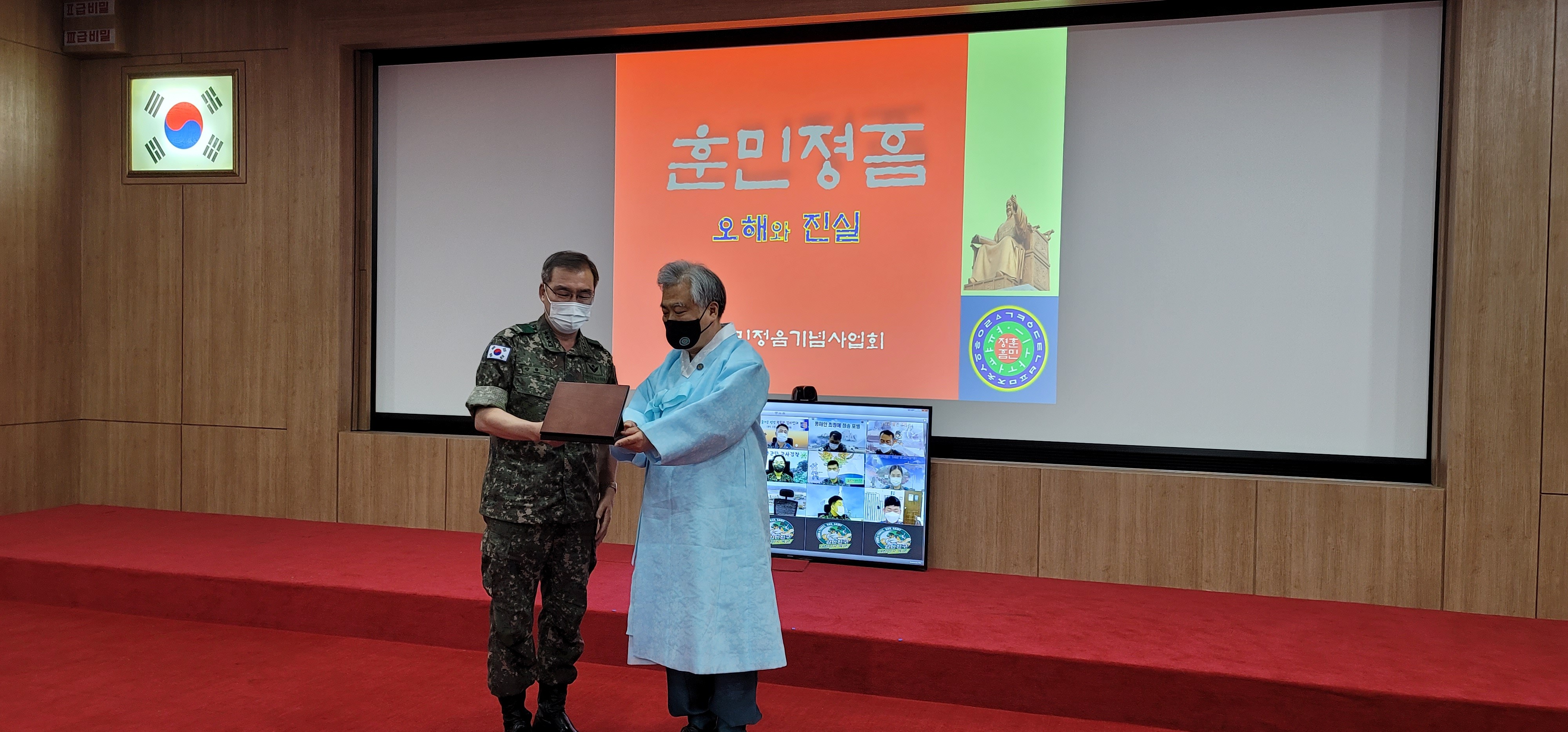 2021년 6월 16일 위풍당당 충용군단 제8군단장 강창구 중장의 초청을 받고 약 45명의 고급 지휘관을 대상으로 안보특강 '훈민정음 오해와 진실'에 대해서 특강을 시작 하기 전 강창구 군단장은 박재성 이사장에게 ‘평소 군에 대한 각별한 관심과 애정으로 군 발전을 위해 아낌없는 성원을 보내주셨으며, 특히 영동지역 안보수호군 역할을 다할 수 있도록 장병복지와 군단 발전을 위해 쏟아주신 헌신적 지원에 깊이 감사드린다’면서 ‘충용군단 전 장병의 감사한 마음과 정성을 담아’ 감사패를 수여하였다.