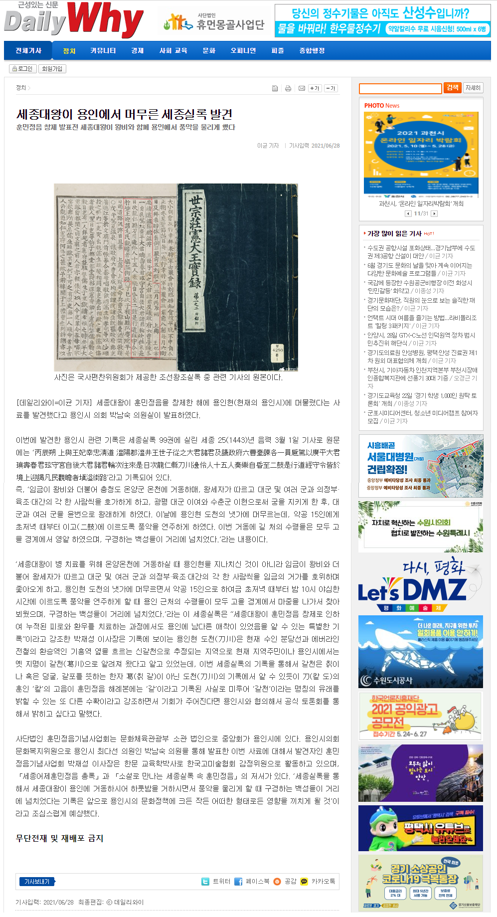 [Daily Why]세종대왕이 용인에서 머무른 세종실록 발견