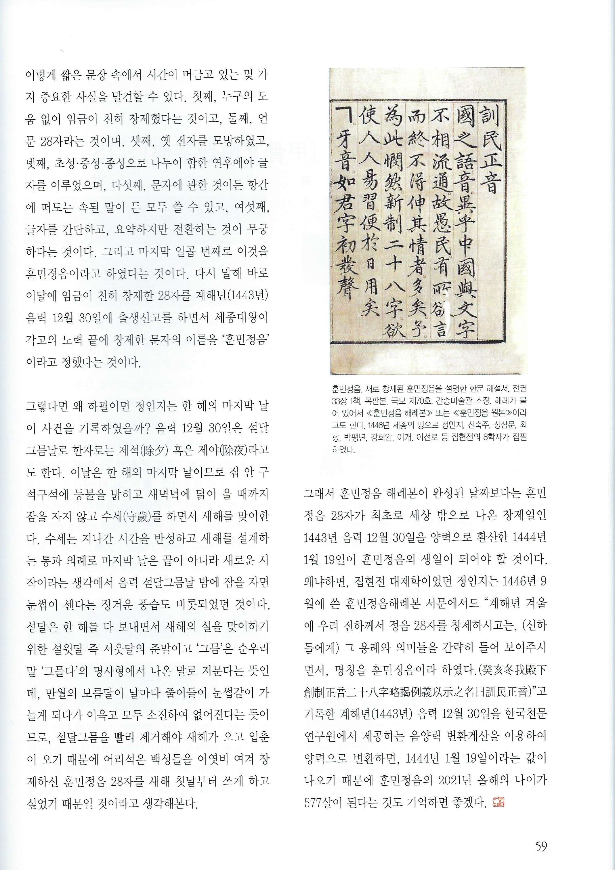 [월간서예문인화]훈민정음의 생일을 아십니까?