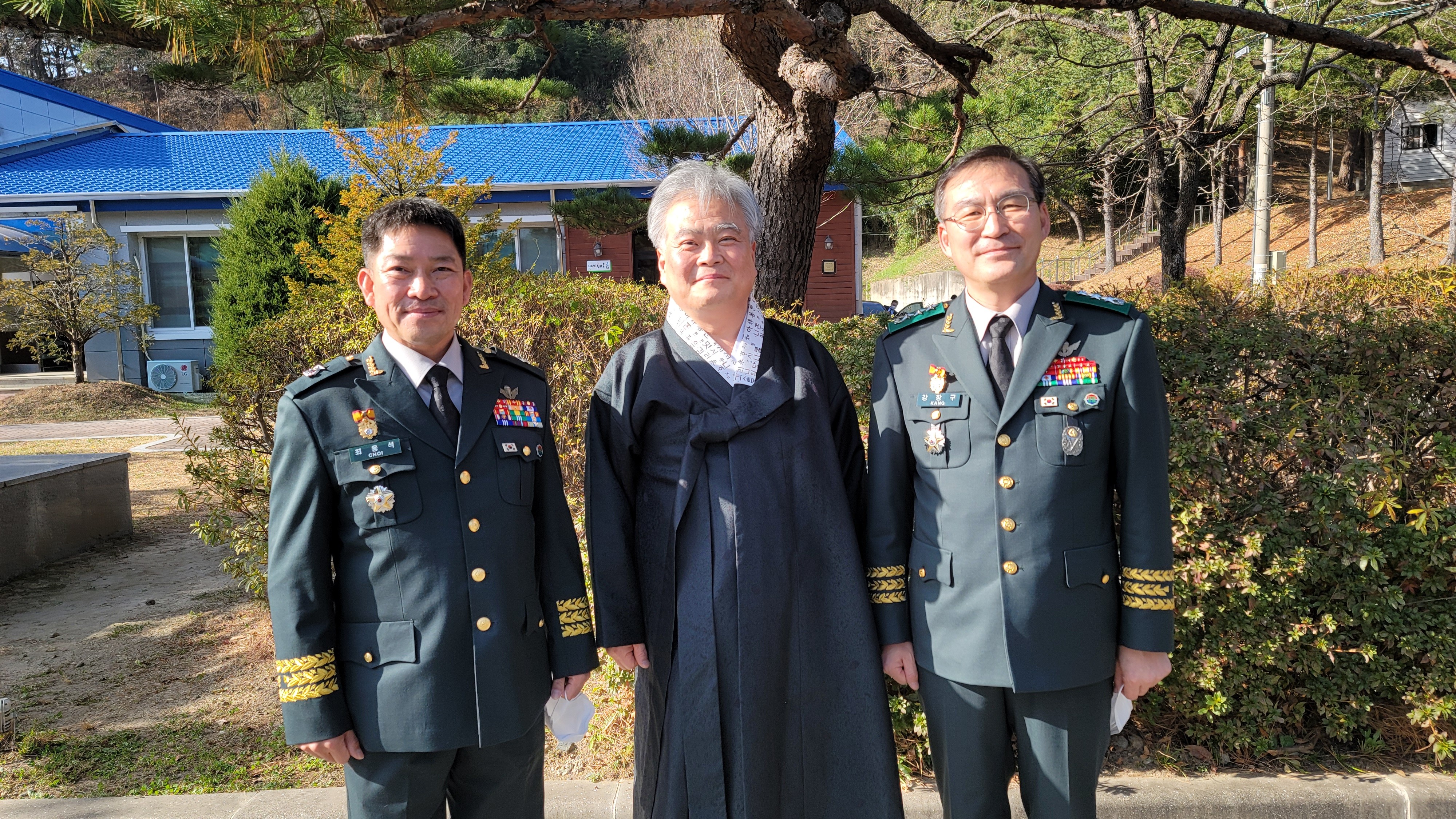 2021년 11월 25일(목) 오전 11시 30분 육군 제8군단장 강창구 중장 초청을 받고 8군단을 방문한 사단법인 훈민정음기념사업회 박재성 이사장은 병사들의 피복 및 전투식량 등에 대해서 강창구 군단장으로부터 설명을 들었다.
