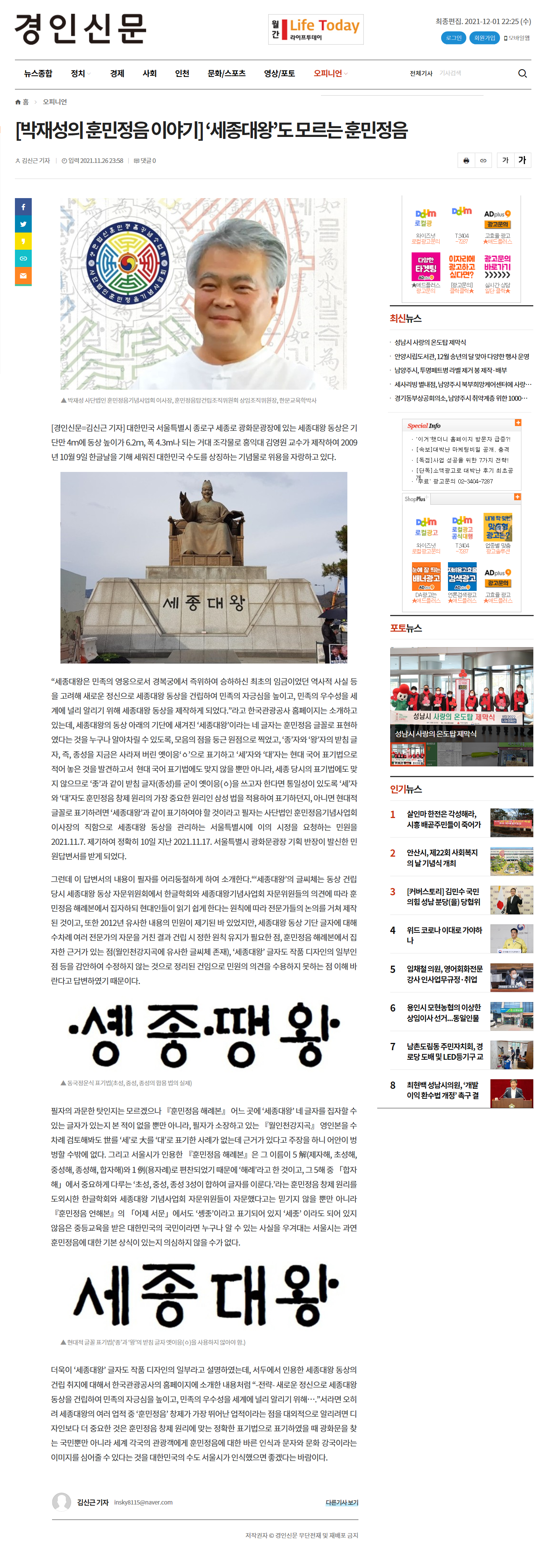 [경인신문] '세종대왕'도 모르는 훈민정음