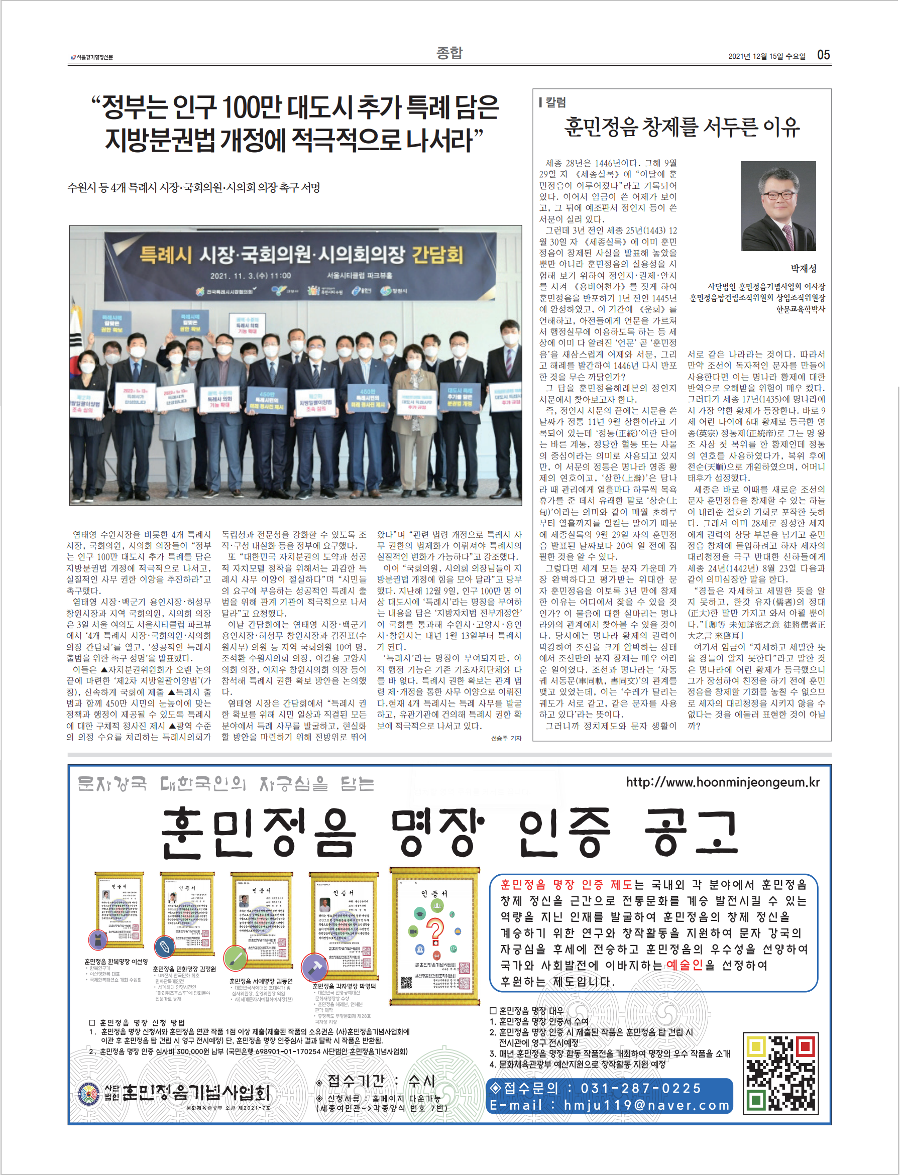 [서울경기행정신문] 훈민정음 창제를 서두른 이유