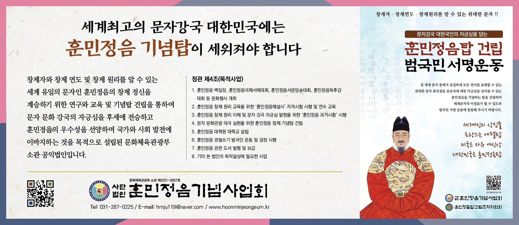 훈민정음탑건립범국민서명운동 대자보(세종어진) - 팔각탑 중앙