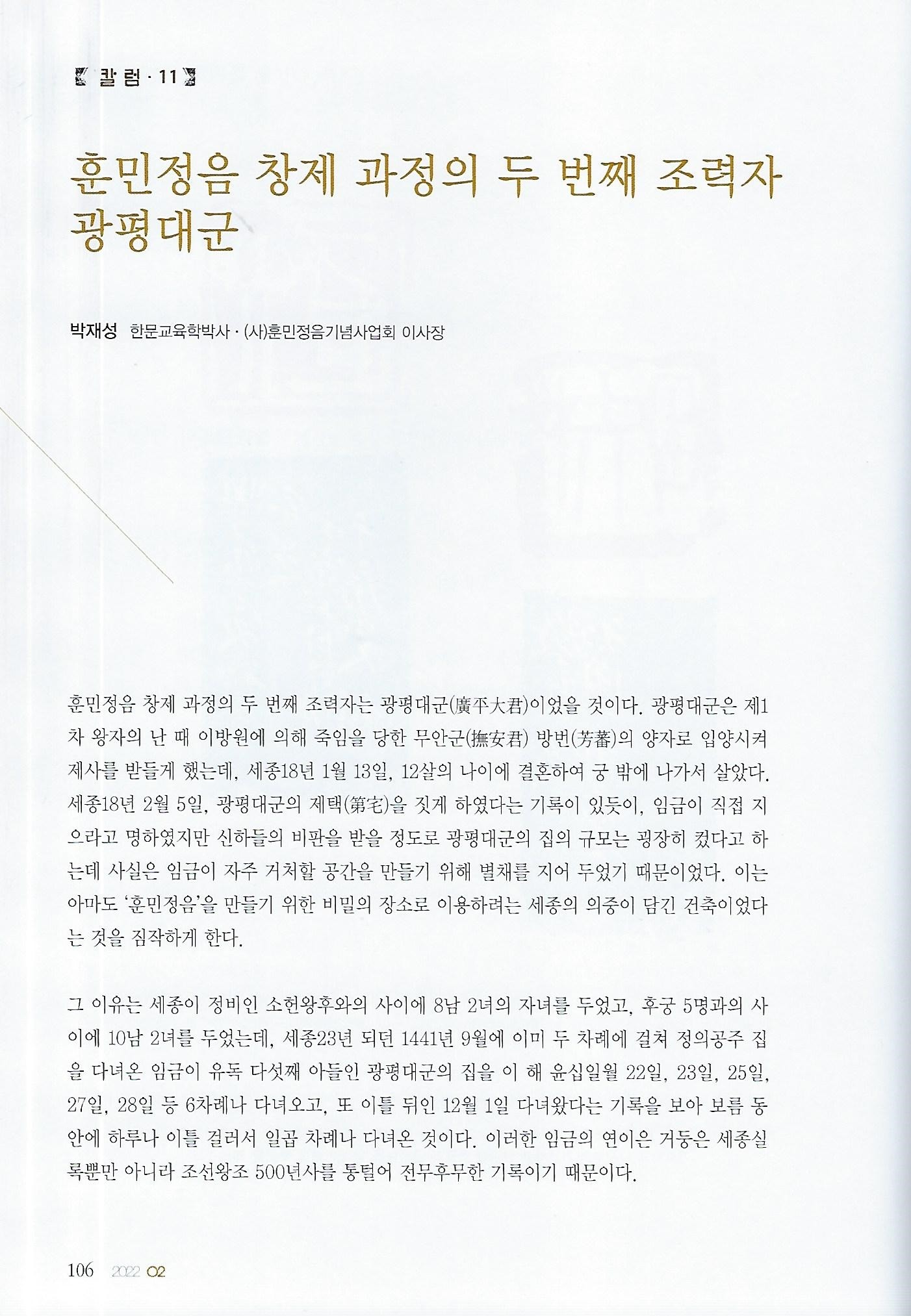 [월간서예문인화] 훈민정음 창제과정의 두 번째 조력자 광평대군