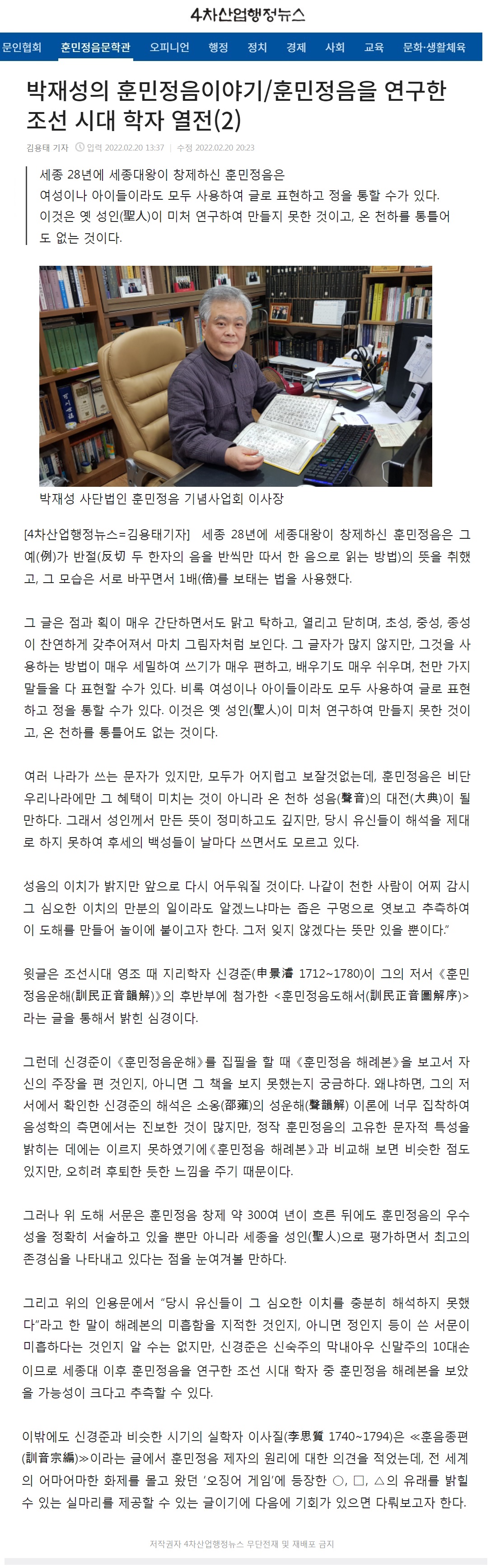 [경남연합신문] 훈민정음을 연구한 조선시대 학자 열전(2)