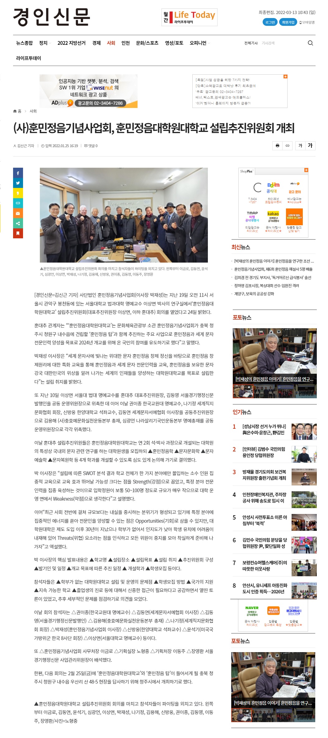 [경인신문] 훈민정음대학원대학교 설립추진위원회 개최