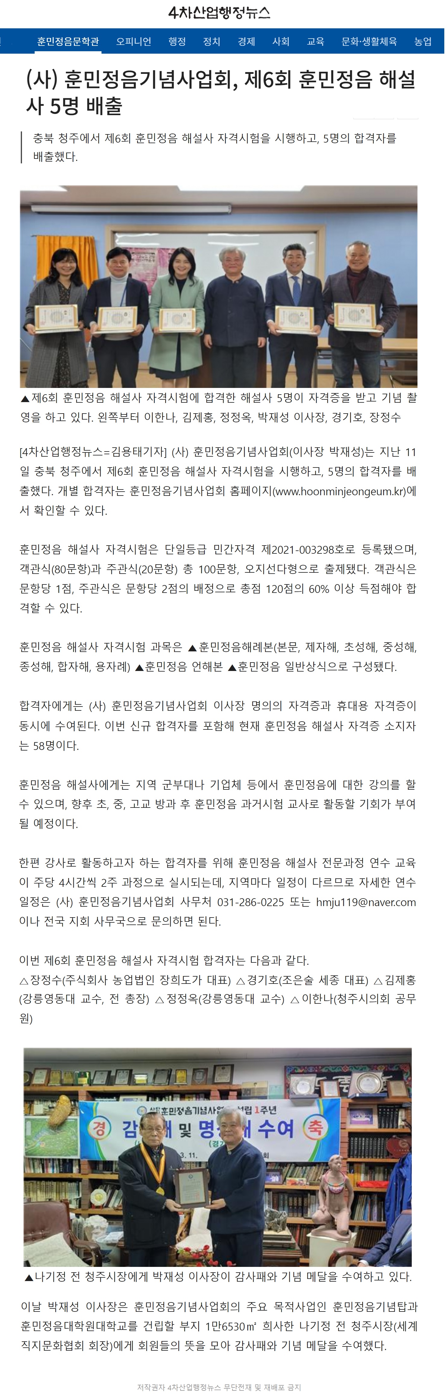 (사) 훈민정음기념사업회, 제6회 훈민정음 해설사 5명 배출 - 4차산업행정뉴스 (4ihjnews.com)