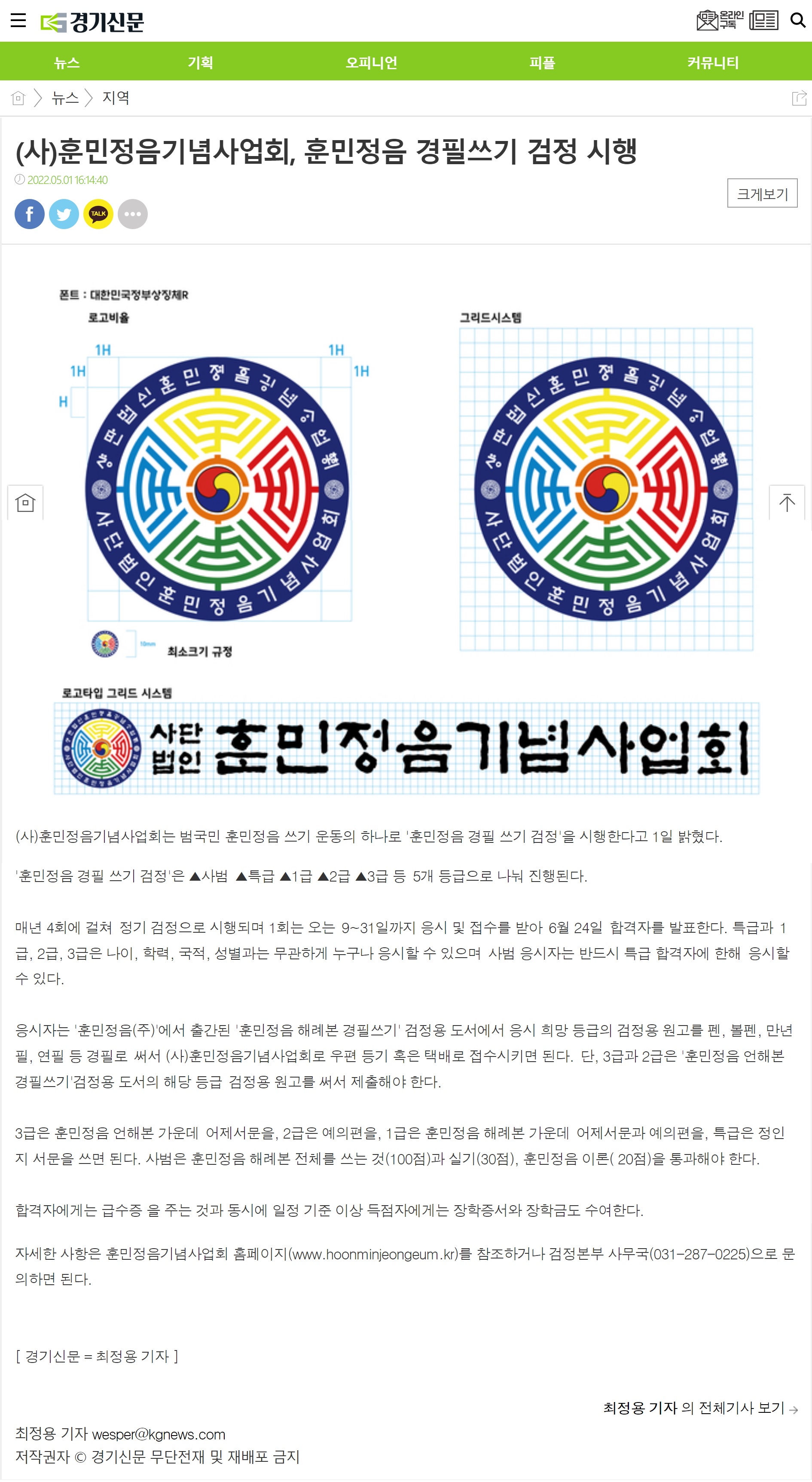 [경기신문] 훈민정음 경필쓰기 검정 시행