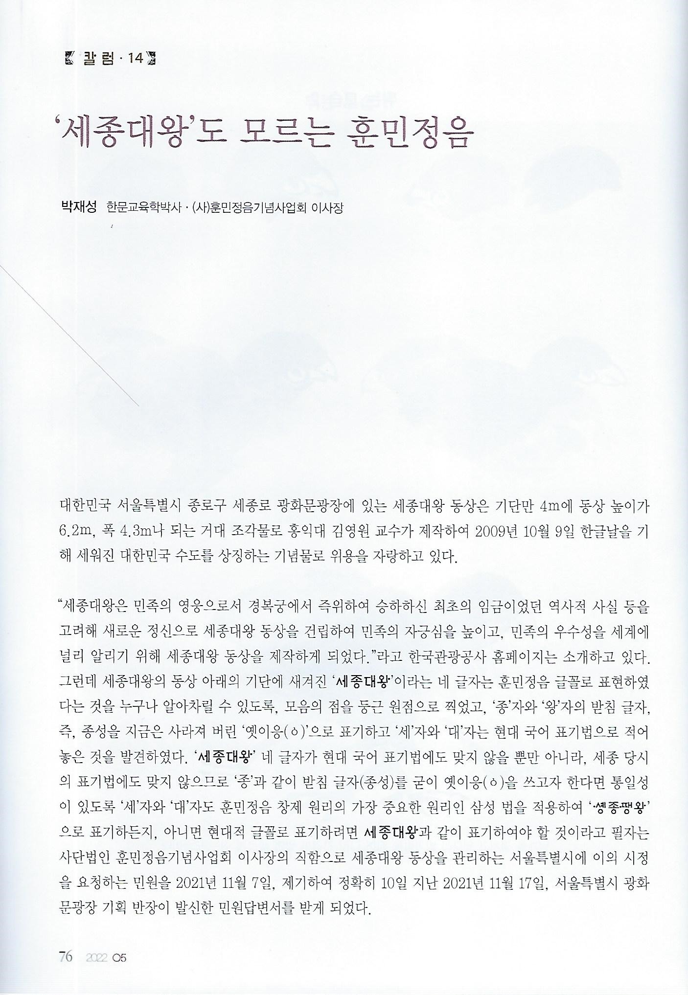 [새용산신문-창간호] 새용산 시대를 열면서 훈민정음의 위대함을 만방에 고하라