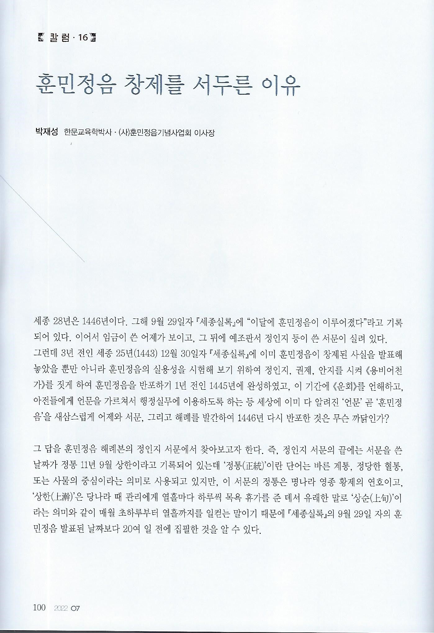 [월간서예문인화] 훈민정음 창제를 서두른 이유