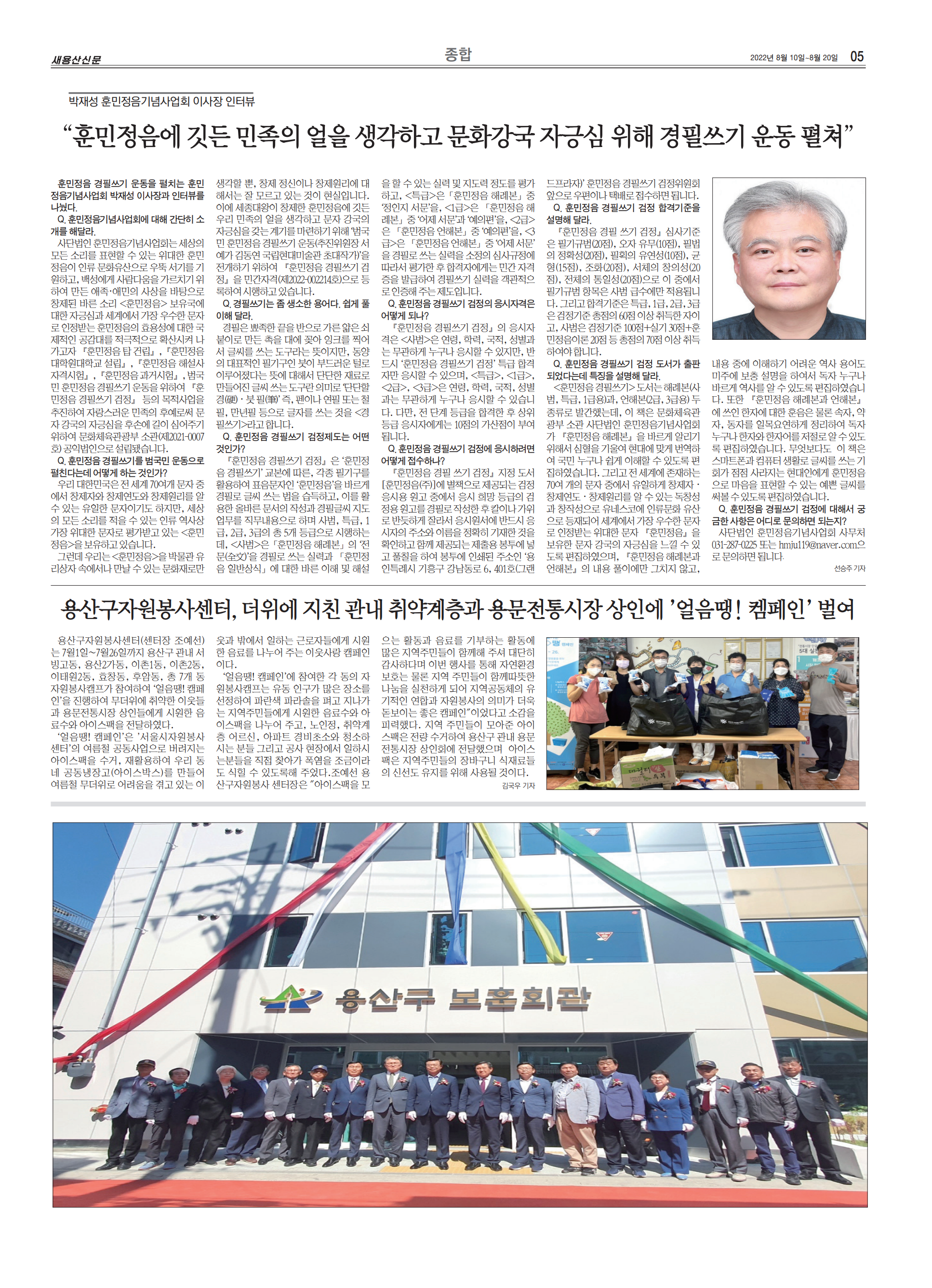 [새용산신문] 박재성 훈민정음기념사업회 이사장 인터뷰