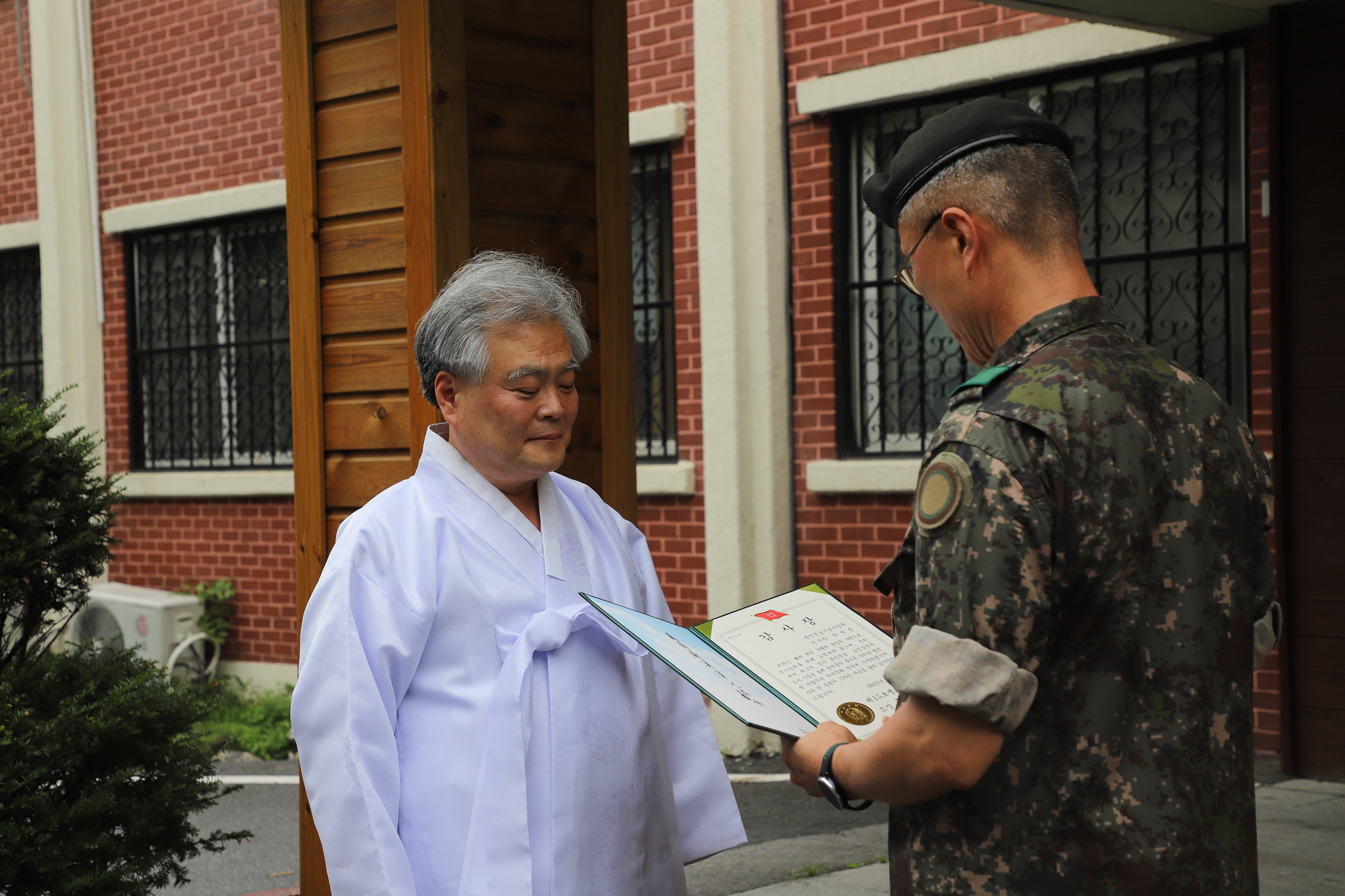 2022년 8월 29일(월) 사단법인 훈민정음기념사업회 박재성 이사장은 강원도 화천에 있는 육군 제15보병사단장 소장 김경준 장군의 초청을 받고 부대를 방문하여 '세계적인 문자 훈민정음'과 '세종대왕의 진면목'이라는 주제로 2시간동안 특강을 하여 참석한 지휘관들로부터 큰 호평을 받았다. 이날 부대 방문에는 김용태 부총재와 김보영 이사가 동행하였으며, 박재성 이사장의 저서 '소설로 만나는 세종실록 속 훈민정음' 200권을 기증하였다. 이에 대한 보답으로 김경중 사단장은 박재성 이사장과 김보영 이사에게 감사장을 수여하였다.<김용태 부총재>