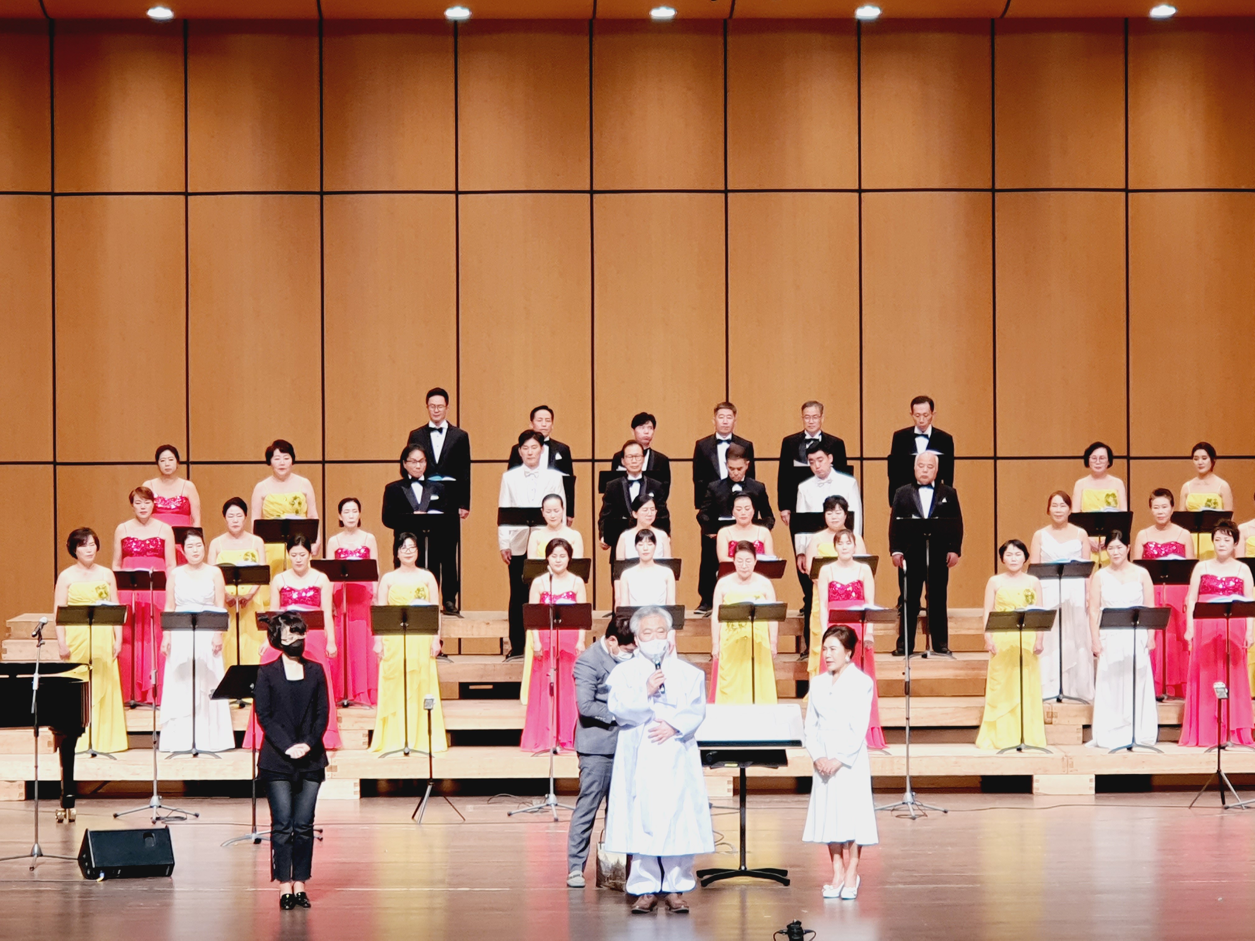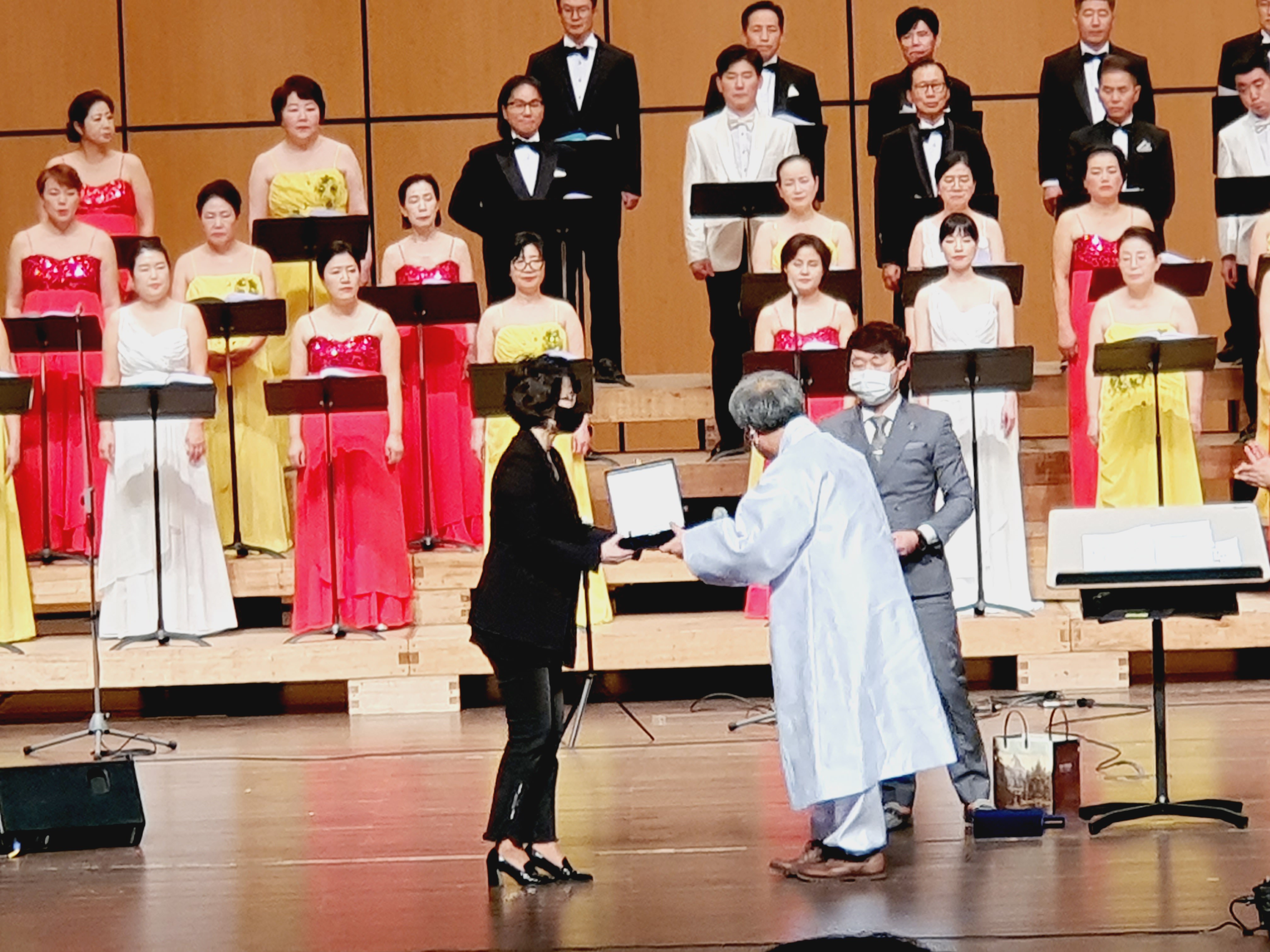 이날 <훈민정음 노래> 공연 후 노영아 지휘자로부터 단상으로 올라와서 축사를 해달라는 요청을 받은 박재성 이사장은 훈민정음기념사업회의 설립취지와 <훈민정음 노래>를 작사하게 된 배경 등을 소개하고, 오병희 작곡가와 노영아 지휘자에게 감사패와 기념 메달을 수여하였다.