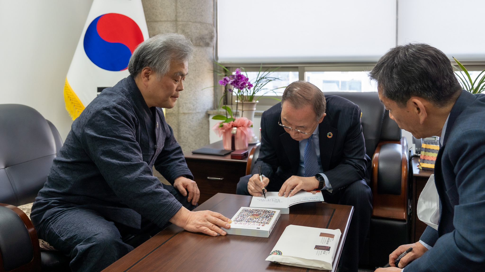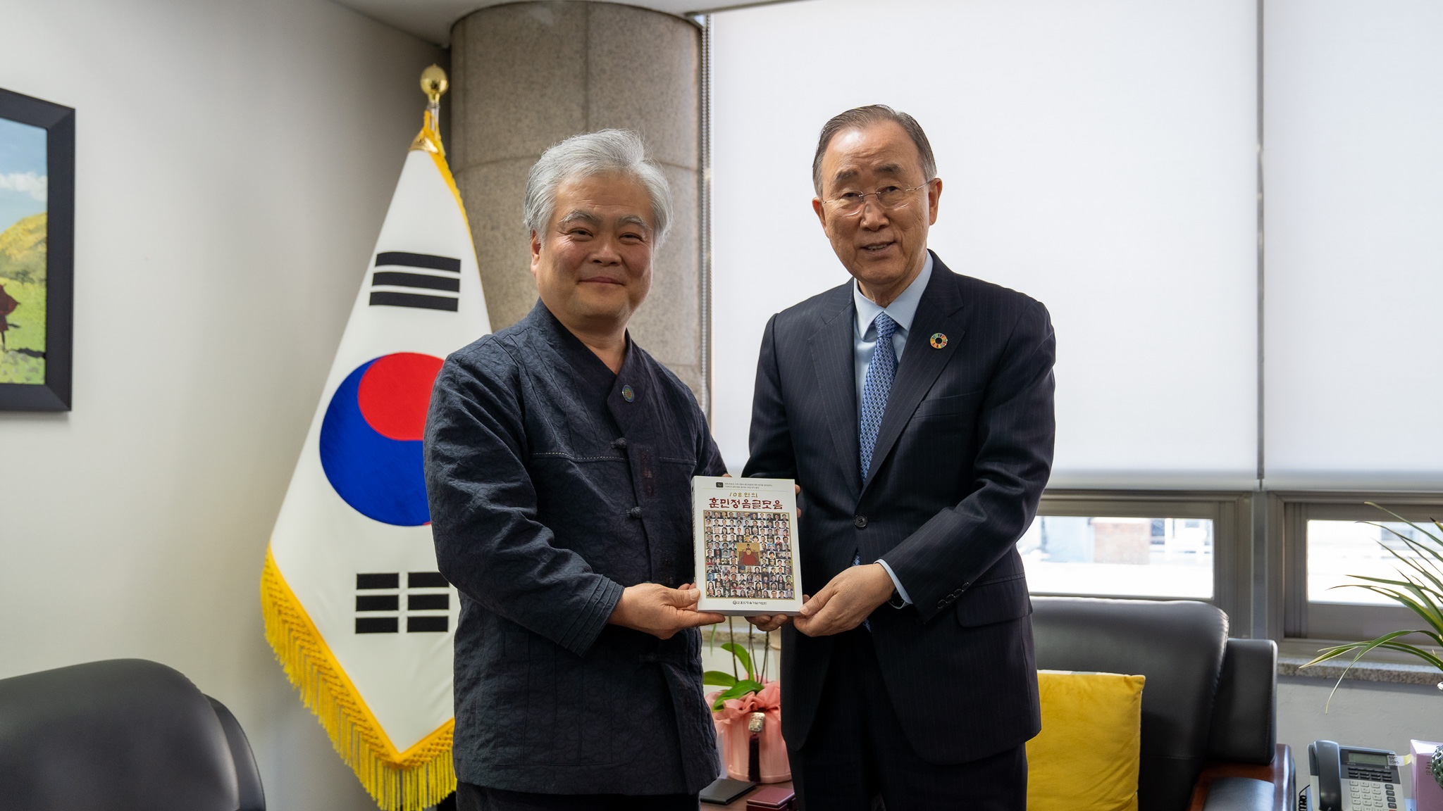 2022년 11월 16일(수) 오늘 오후 3시에 보다나은 미래를 위한 반기문 재단을 방문하여 반기문 전 유엔사무총장을 예방했을 때 별도로 준비해간 <108인의 훈민정음 글모음> 도서에 "사단법인 훈민정음기념사업회의 무궁한 발전을 기원합니다."라는 격려의 말씀을 남겨주셨다.