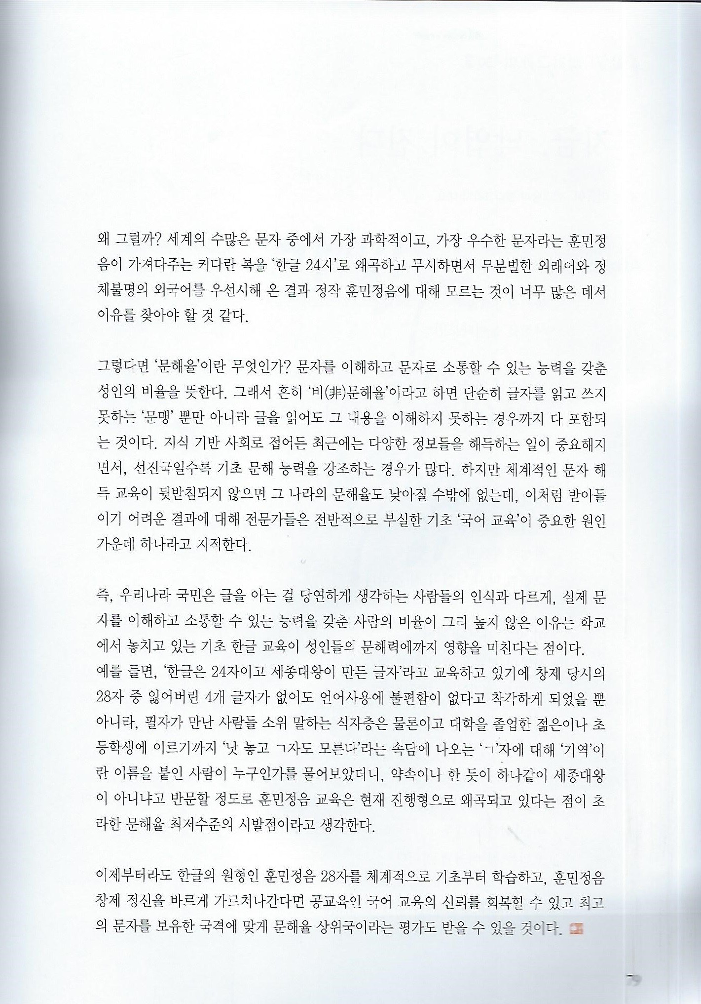 [월간서예문인화] 문해율 최저수준의 훈민정음 보유국 대한민국
