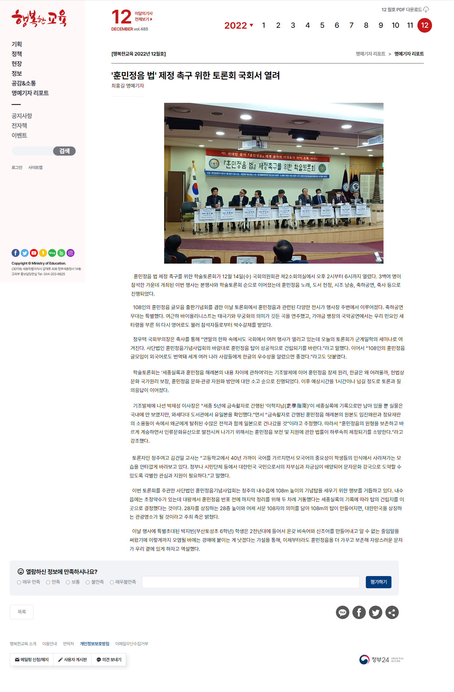[교육부 행복한 교육] '훈민정음 법'제정 촉구를 위한 토론회 국회서 열려