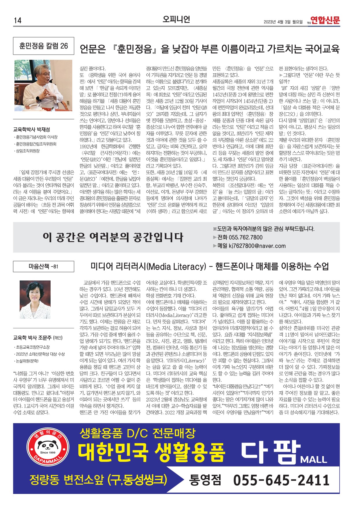 [경인신문] 언문은 훈민정음을 낮잡아 부른 이름이라고 가르치는 국어교육