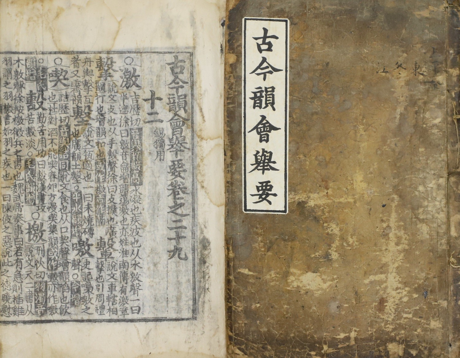 1993년 4월 27일 문화재청에 의해 보물(제1158호)로 지정되어 국립중앙박물관(서울특별시 용산구 서빙고로 137)에 소장되어 있는 <고금운회거요>는 권27, 권28, 권29, 권30까지 4권을 1책으로 묶은 목판본이다. 판각이 비교적 정교하고 인쇄가 매우 깨끗하여 원판본(元板本)의 특징이 잘 나타나고 있는 우리나라에서는 최초의 번각판((飜刻板)이다.