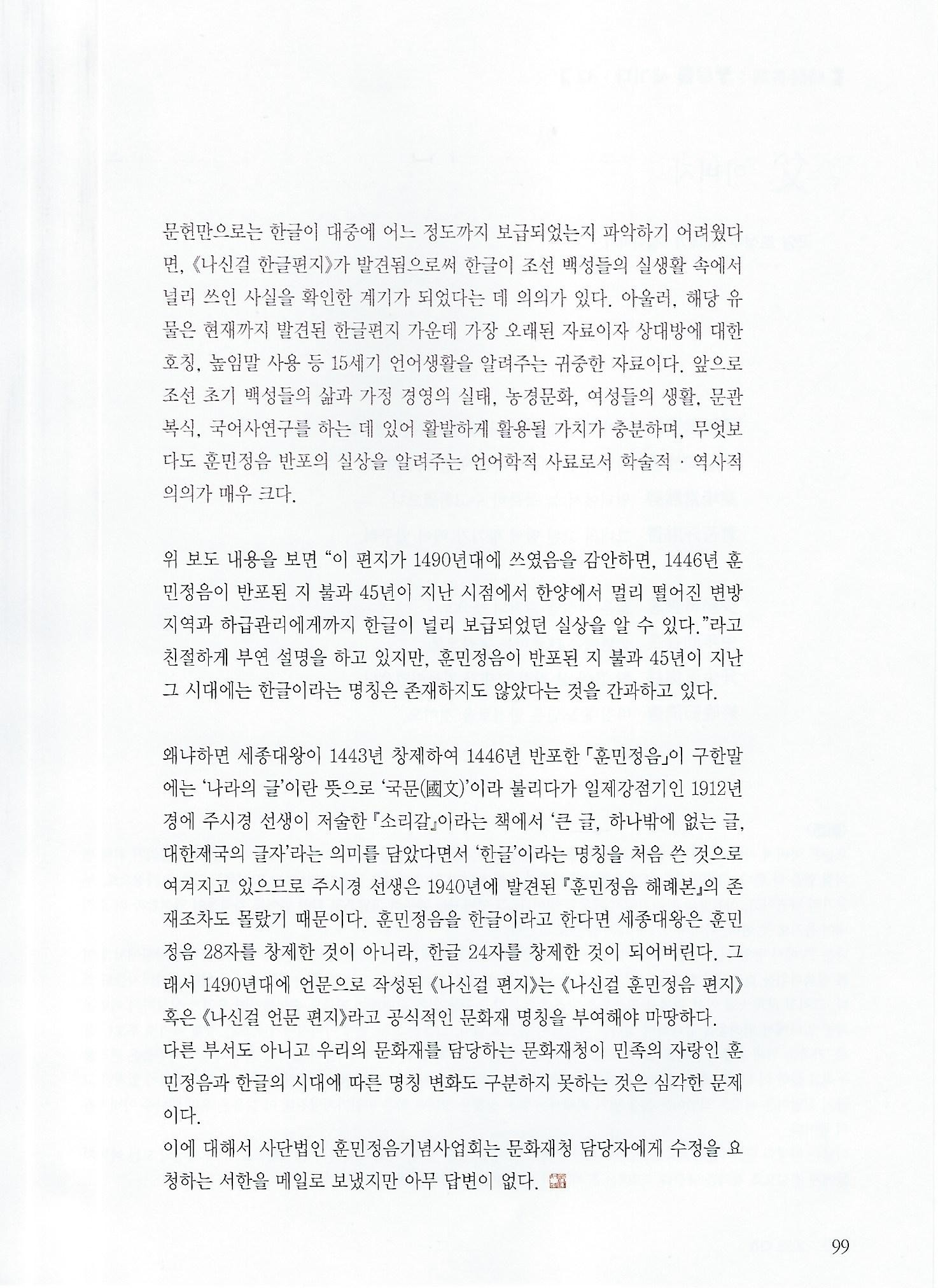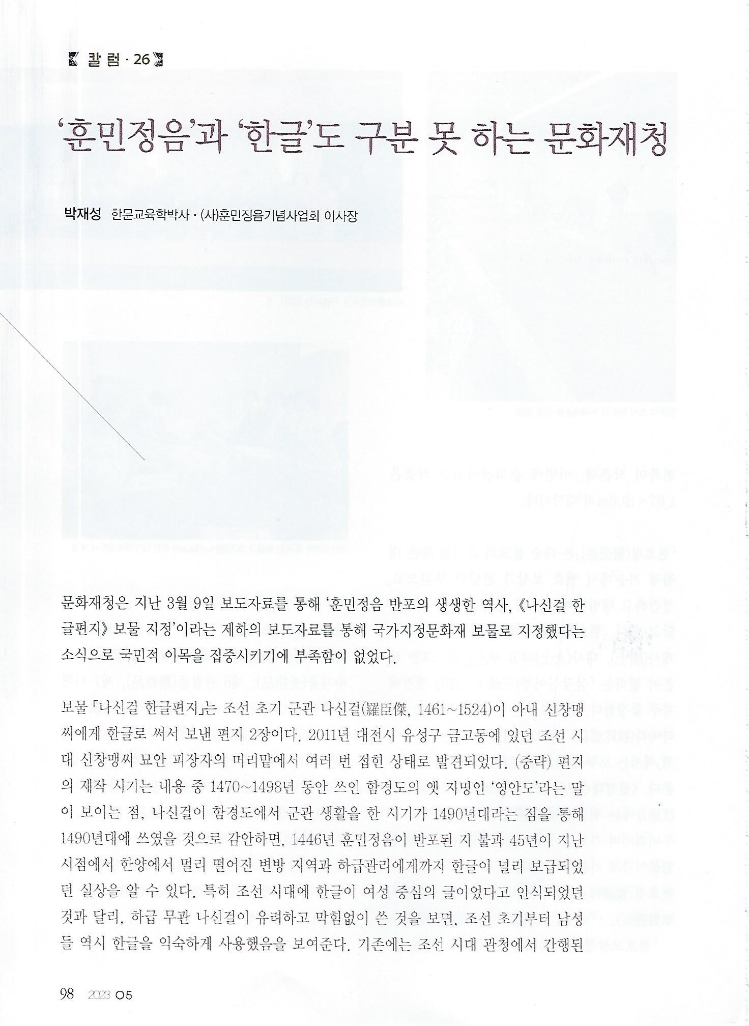 [월간서예문인화] '훈민정음'과 '한글'도 구분 못하는 문화재청