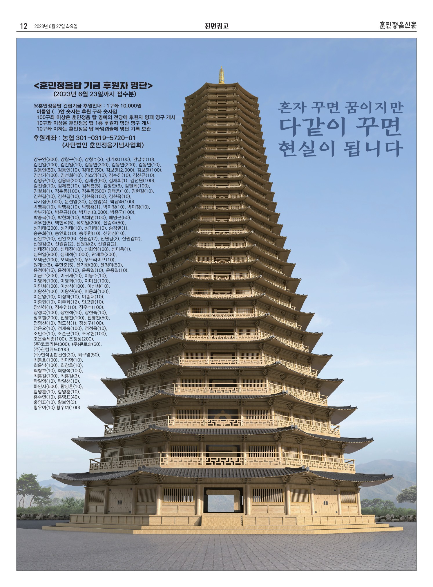 훈탑위 소식
