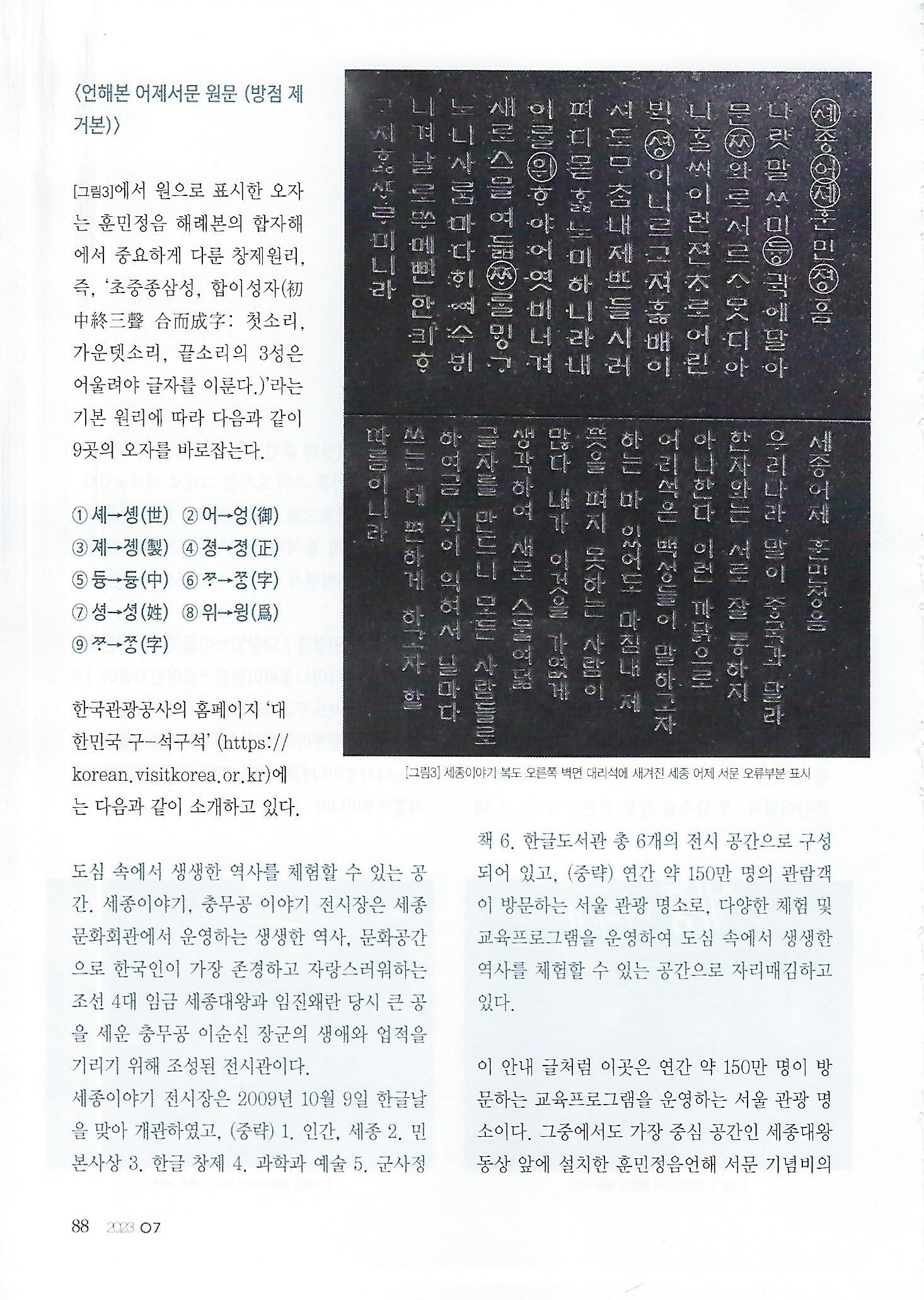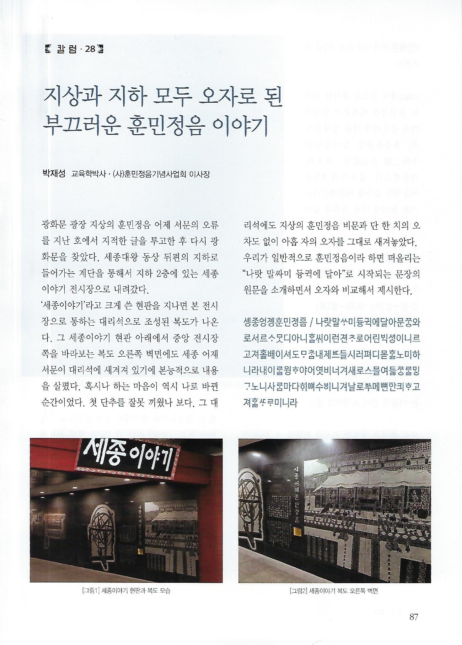 [월간서예문인화] 지상과 지하 모두 오자로 된 부끄러운 훈민정음 이야기