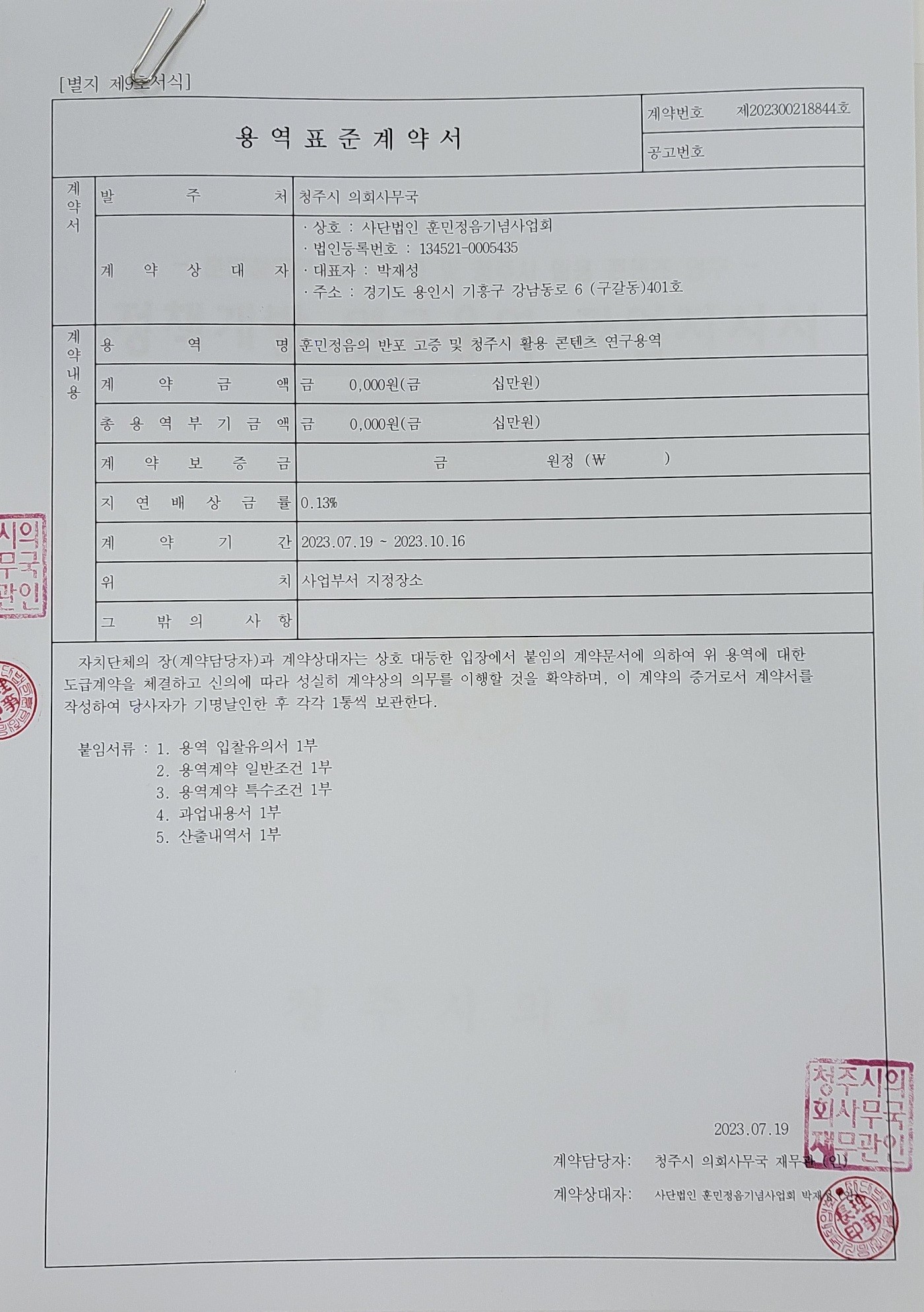 훈민정음의 반포 고증 및 청주시 활용 컨텐츠 연구용역 계약체결