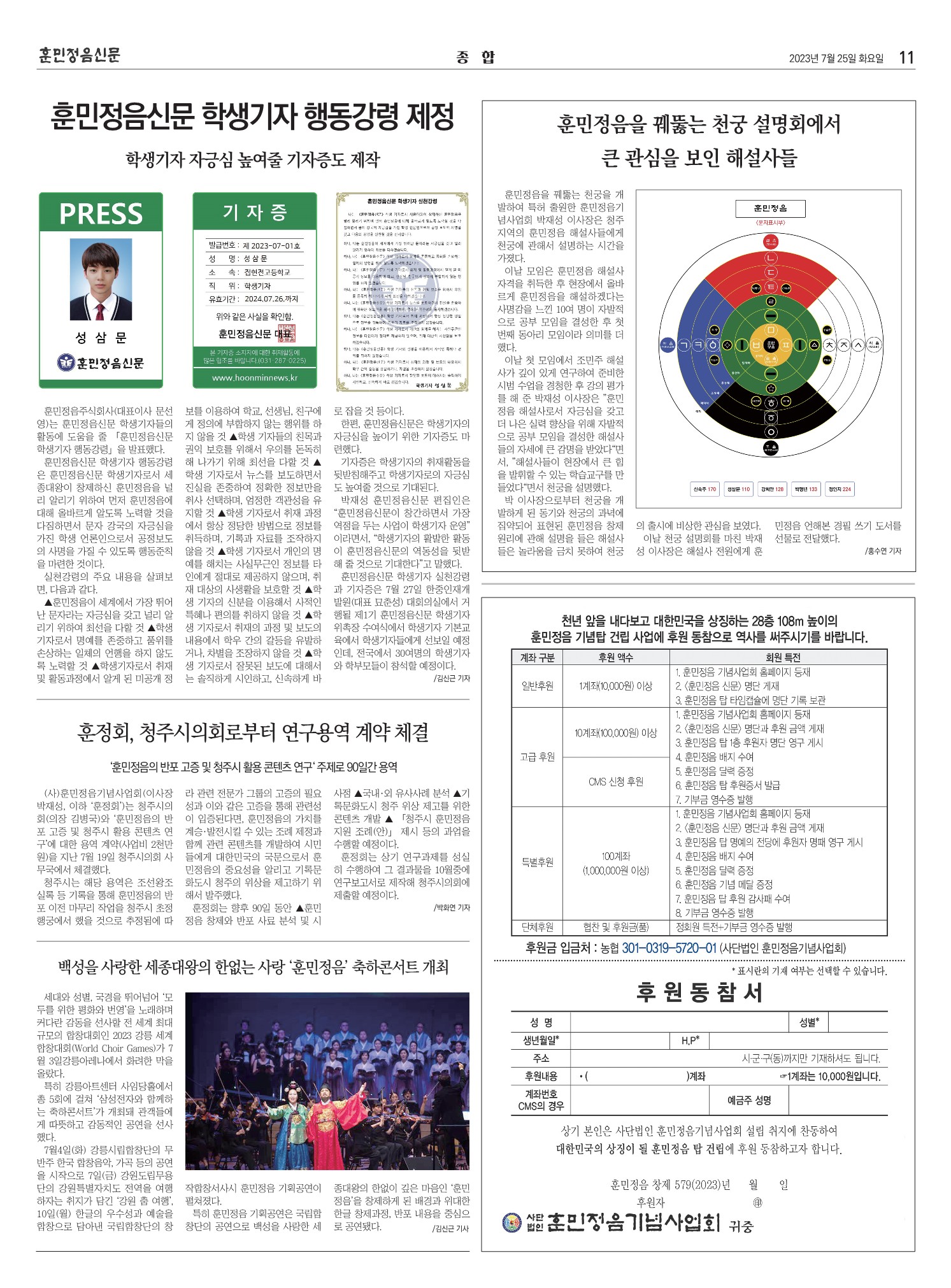 제1기 훈민정음신문 학생기자 위촉장 수여식