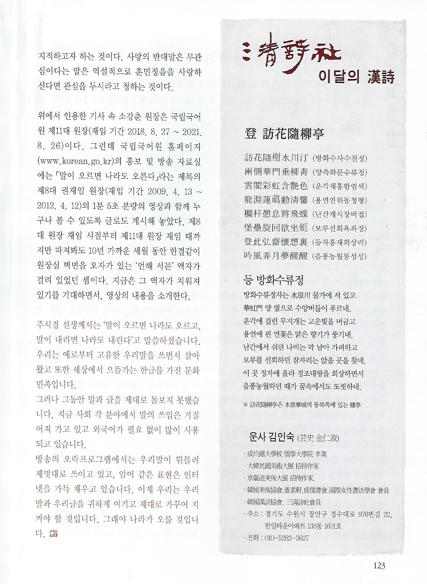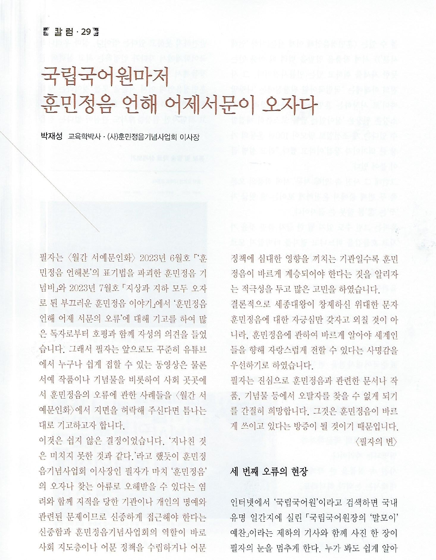 [월간서예문인화] 국립국어원마저 훈민정음 언해 어제서문이 오자다