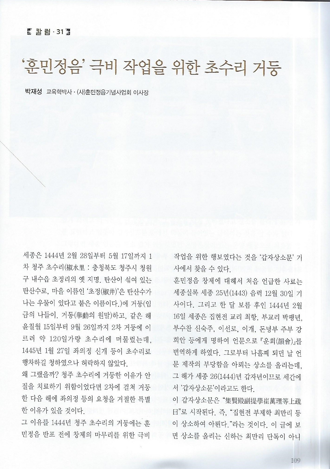 [월간서예문인화] '훈민정음' 극비작업을 위한 초수리 거둥