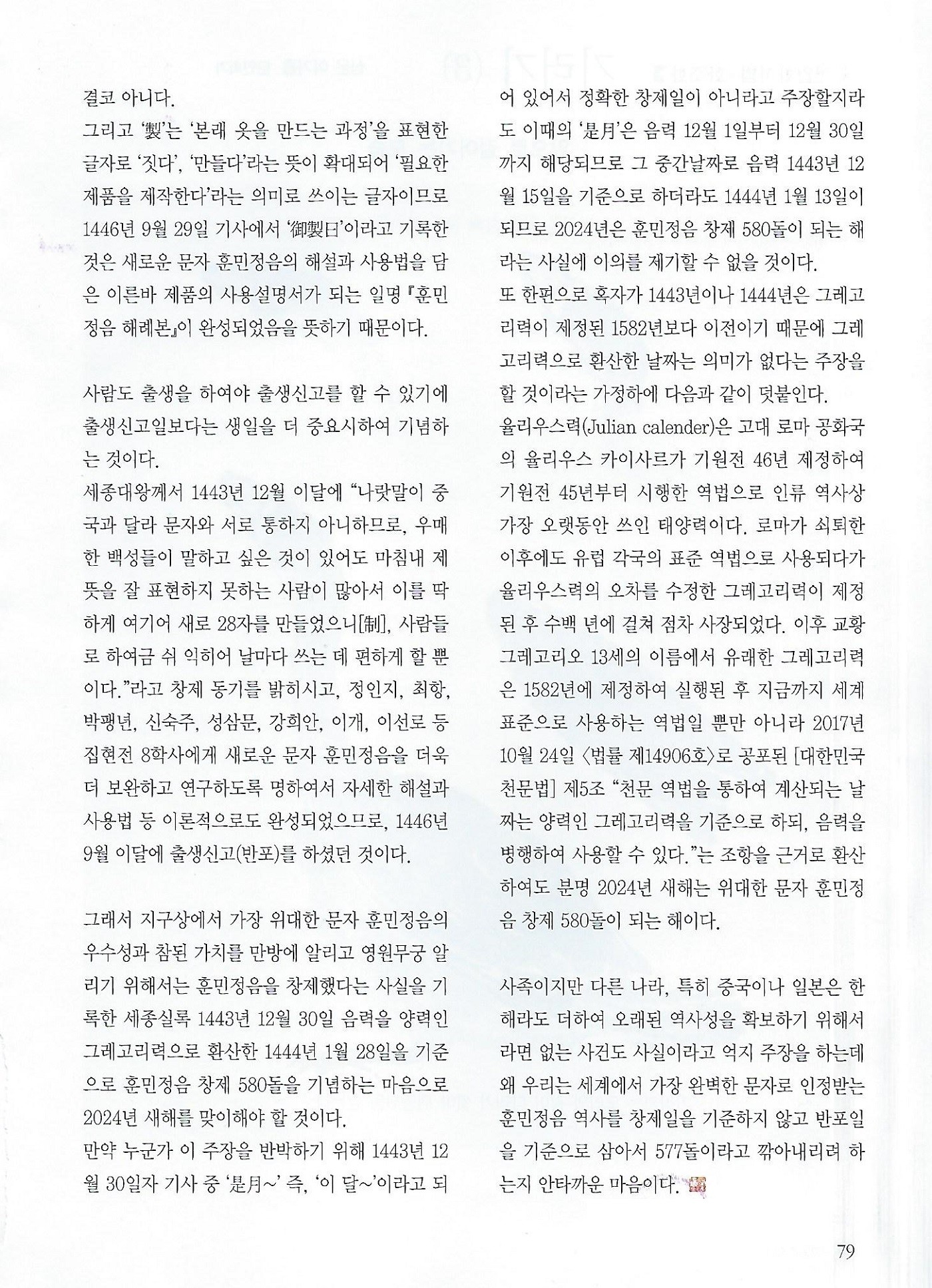 [월간서예문인화] 훈민정음 창제 580돌 2024년을 맞이하며