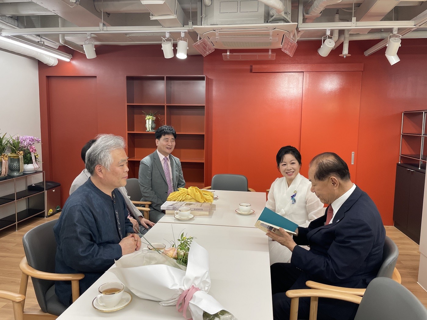 훈민정음기념사업회 박재성 이사장은 2024년 5월 31일 오전 11시 30분 황우여 훈민정음탑건립조직위원회 대표조직위원장을 방문하여 훈민정음 탑 건립 등에 관하여 환담하였다. 이 자리에서 박이사장은 황우여 조직위원장에게 저서 <훈민정음에서 길을 찾는다>를 증정하였다. 김진곤 전국학교운영위원총연합회장, 김동연 이사, 이선영 이사가 동행하였다.
