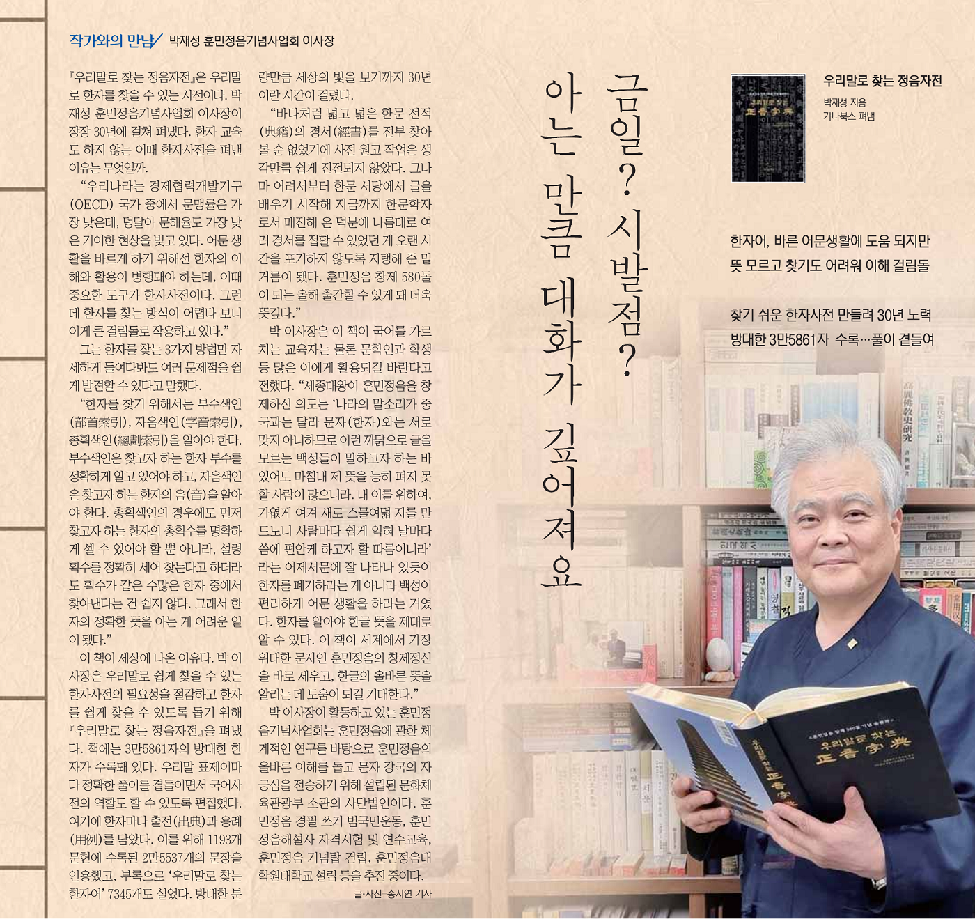 30년만의 쾌거 박재성 박사 -- '우리말로 찾는 정음자전'출판