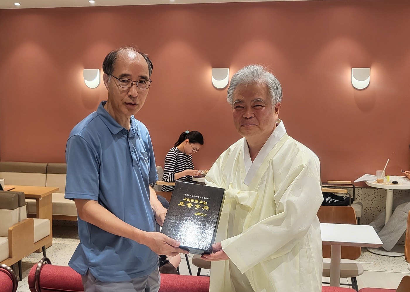 한글학회 김주원 회장 초대받아 저서 주고 받아