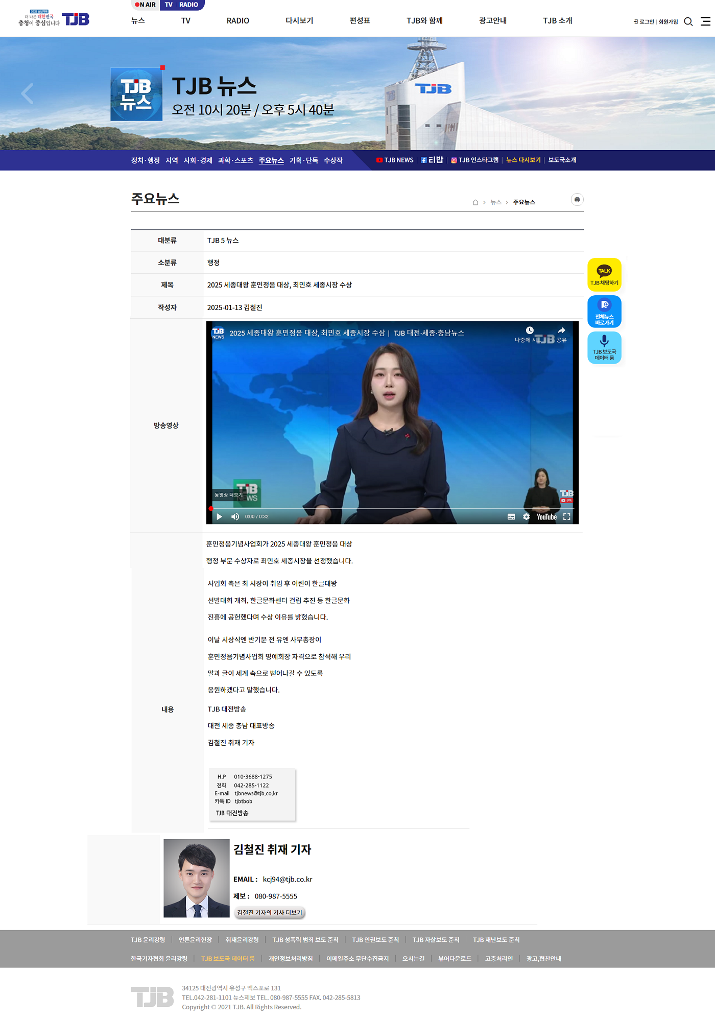 [TJB뉴스] 2025 세종대왕 훈민정음 대상, 최민호 세종시장 수상