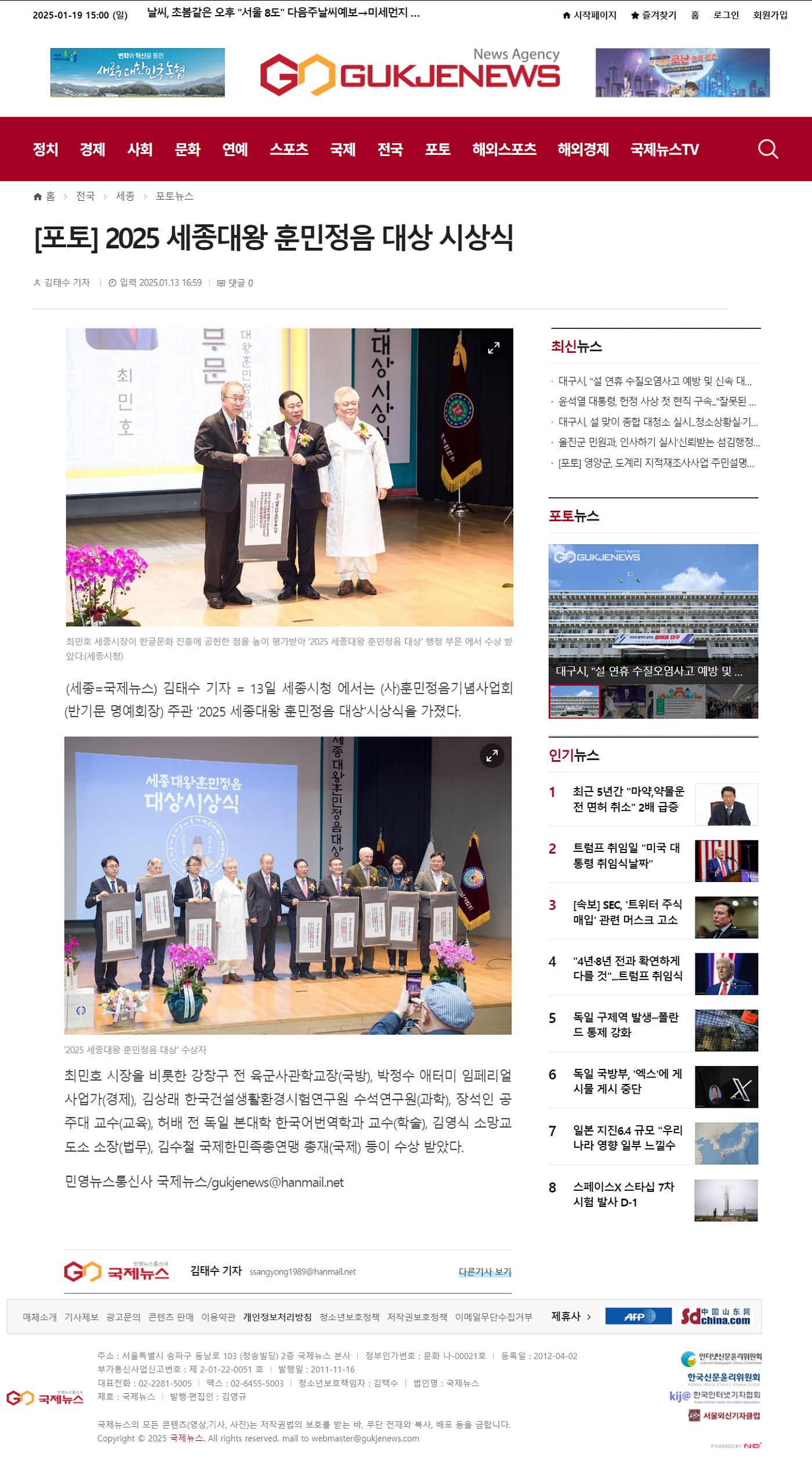 [국제뉴스] 2025 세종대왕 훈민정음 대상 시상식