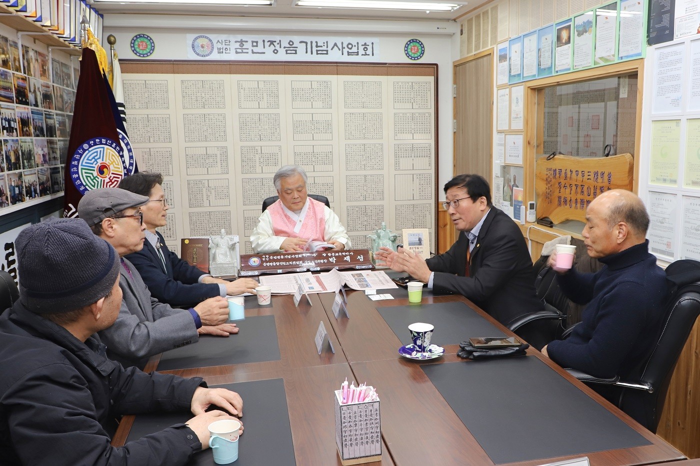국내 대표적인 영자신문 코리아헤럴드에서 발행하는 '파워코리아' 백종원 대표이사가 3월 4일 사단법인 훈민정음기념사업회가 추진하고 있는 '훈민정음 창제 기념탑'에 관한 심층 취재를 위하여 박재성 이사장을 예방하였다. 백 대표(대기자)는 이 자리에서 박 이사장 주축으로 추진하고 있는 훈민정음 창제 기념탑(이하 '훈민정음탑')의 건립 사업은 국내를 넘어서 세계적인 기념물이 될 것이라고 확신한다면서 이 훈민정음탑 건립 취지가 세계적으로 확산될 수 있도록 지면을 통해서 최대한 지원하겠다고 약속하였다. 이날 취재에는 이금로 이사(경기남일보 대표), 박화연 이사, 강용호 이사(한양인쇄소 대표), 임영택 대표, 방한나 해설사, 김신근 훈민정음 신문 편집국장이 함께 하였다.<김신근 훈민정음신문 편집국장>