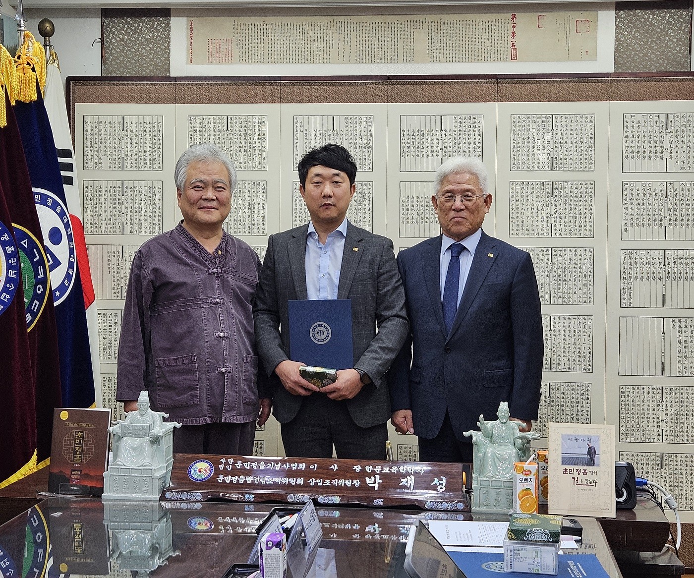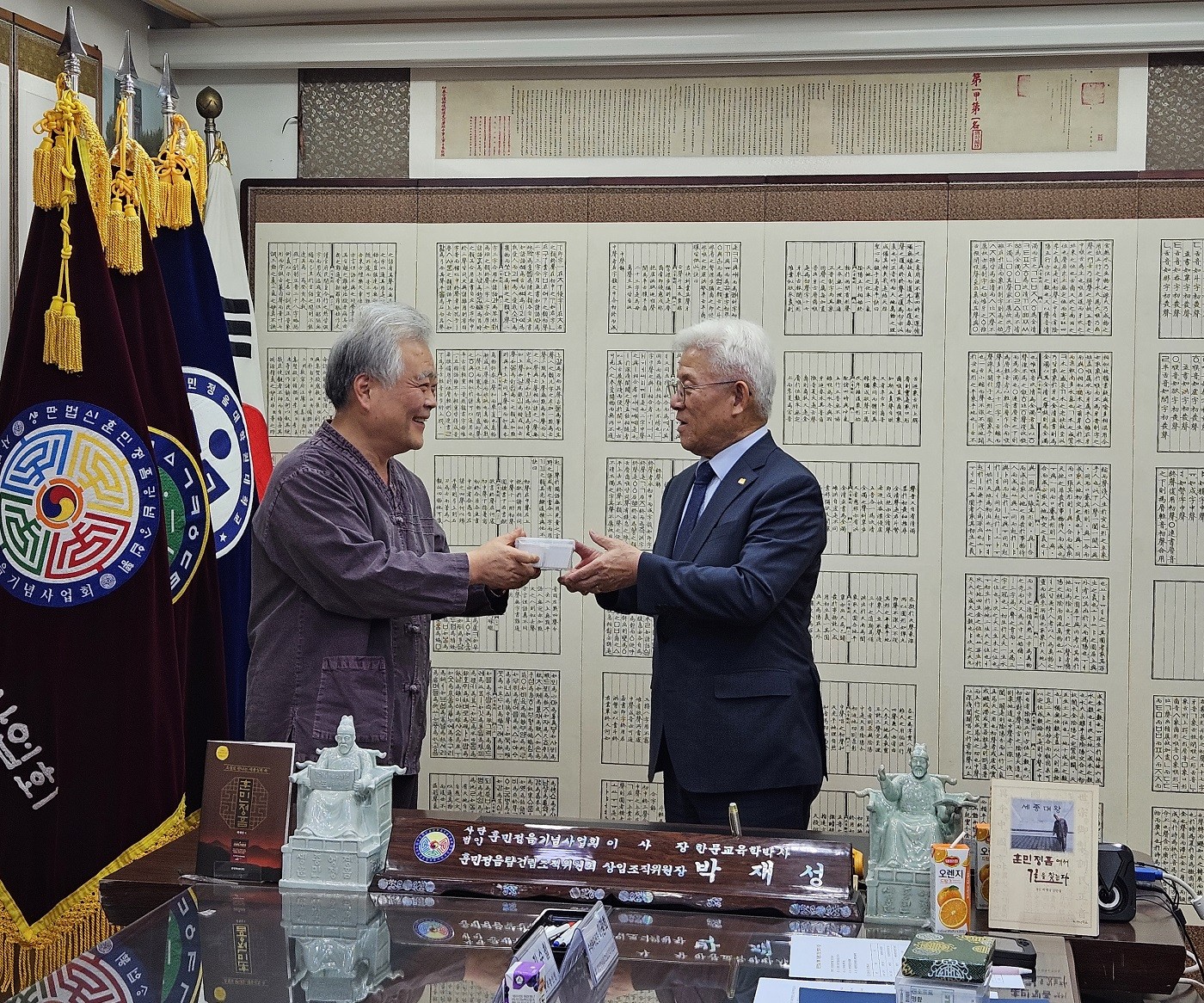 2025년 10월 23일(수) 오전 11시, 국제한민족총연맹(총재 김수철, 이하 ‘한민총’) 김수철 총재와 임원단이 사단법인 훈민정음탑건립조직위원회(이사장 박재성, 이하 ‘훈탑위’)를 방문하였다.