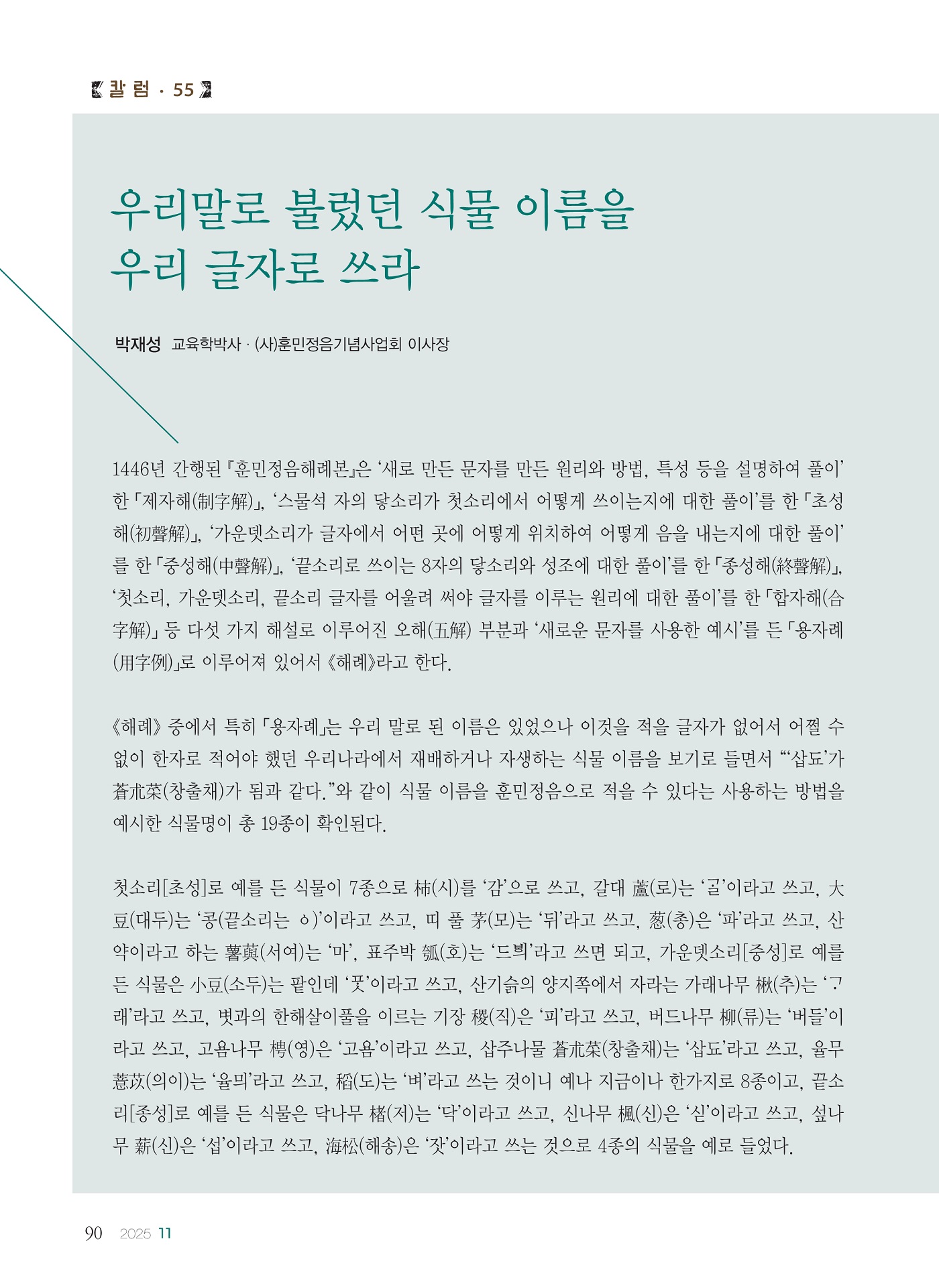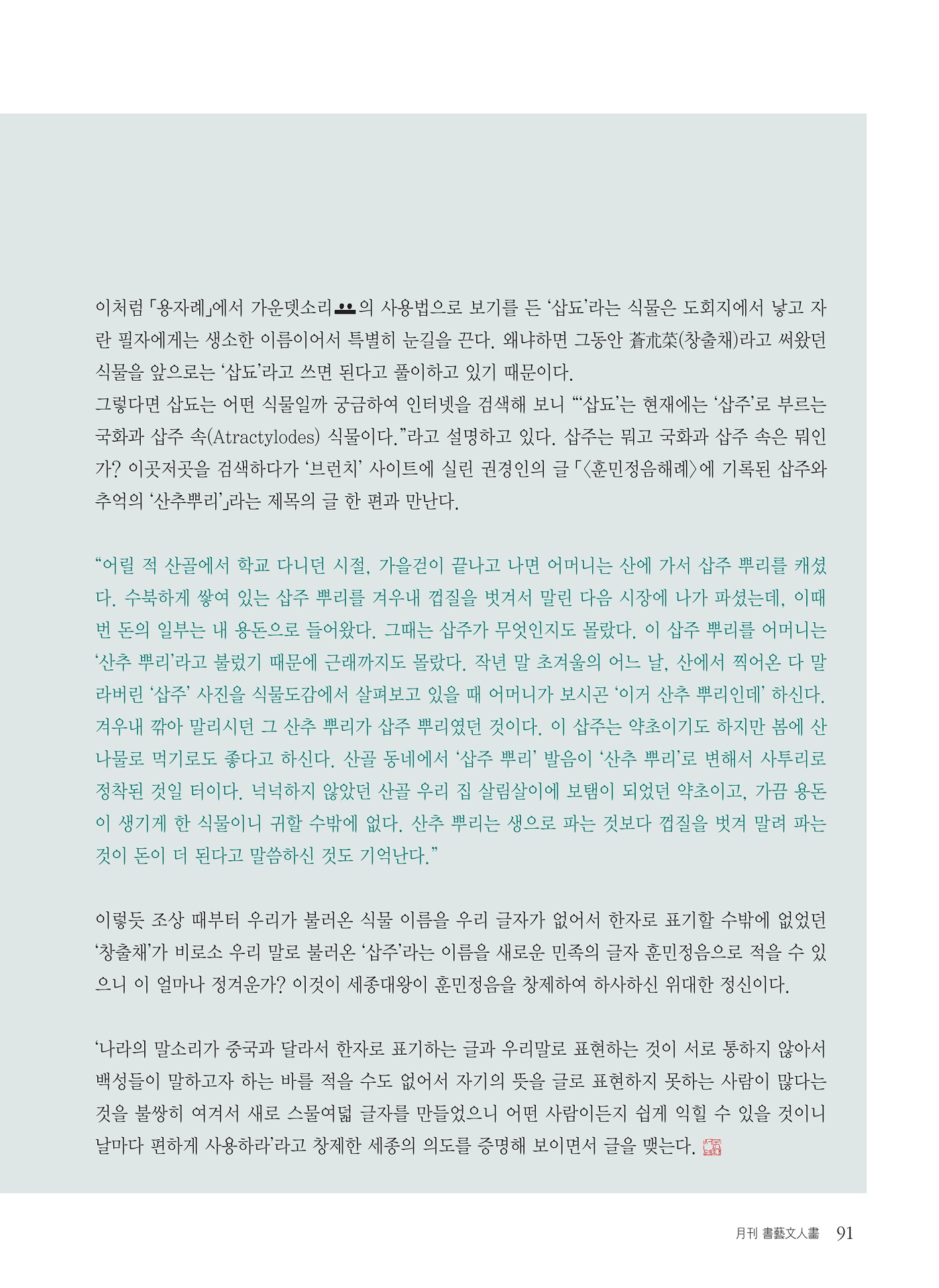 [월간서예문인화] 우리말로 불렀던 식물 이름을 우리 글자로 쓰라