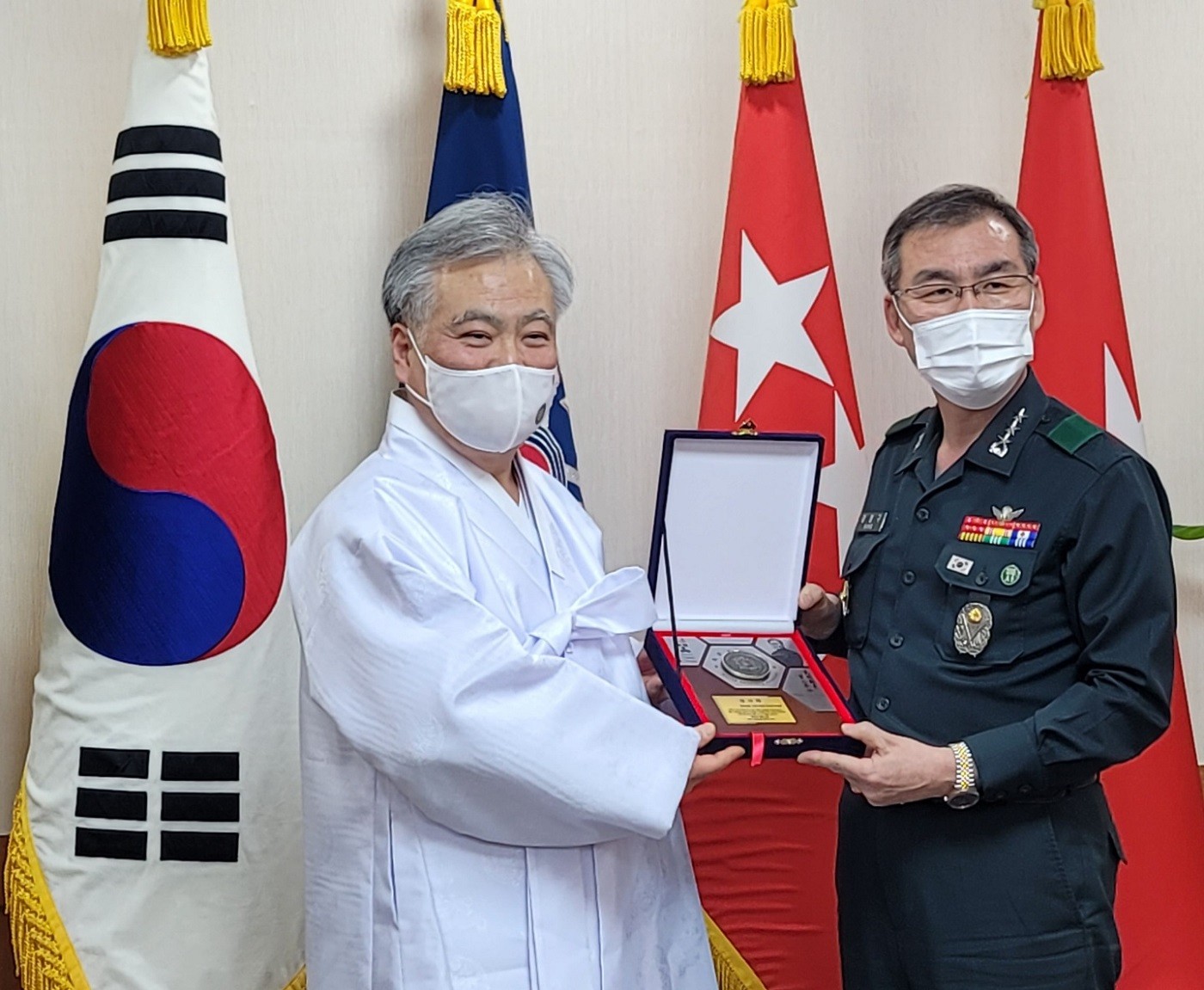 강창구(중장) 교장 주관으로 열린 도서 기증 행사에서 육사는 도서를 기증한 박 이사장과 도서 출판비 전액을 후원한 ㈜한컴위드 송상엽 대표에게 감사패를 증정했다.