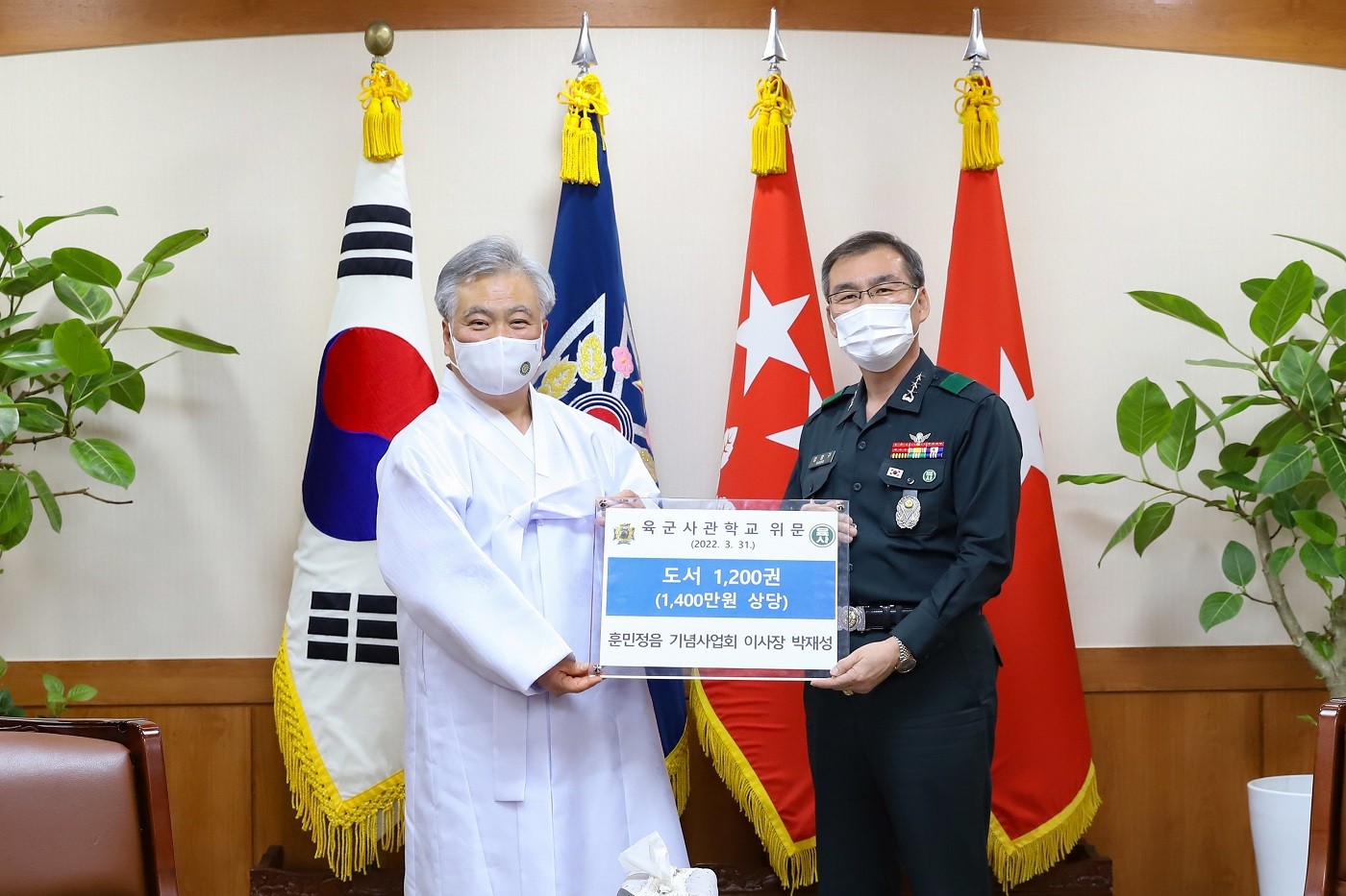 (사) 훈민정음기념사업회(이사장 박재성)는 지난달 31일 육군사관학교(교장 강창구)에 박 이사장의 저서 ‘소설로 만나는 세종실록 속 훈민정음’ 도서 1200권을 기증했다.