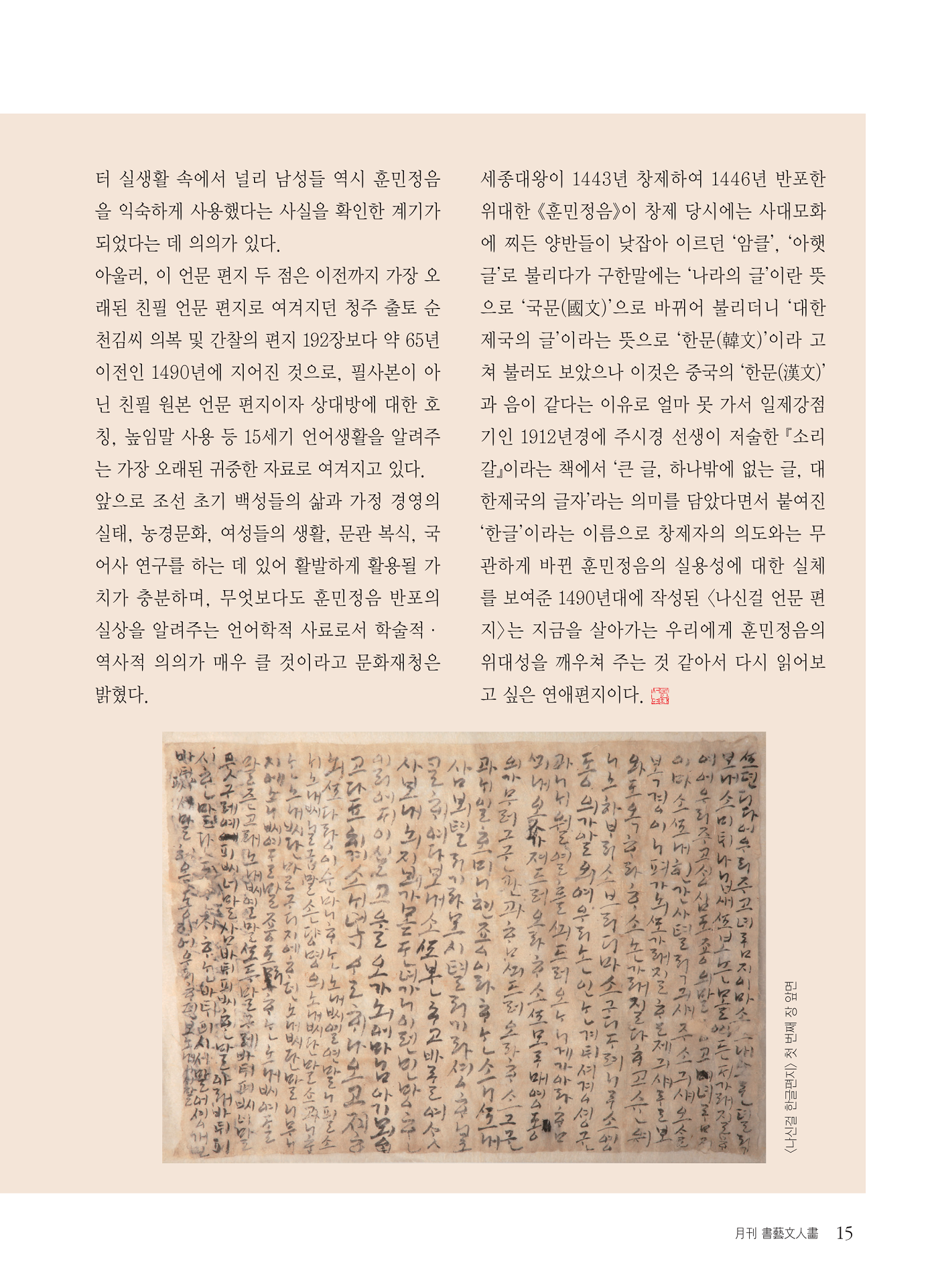 [월간서예문인화] 보물로 지정된 언문 사랑 편지