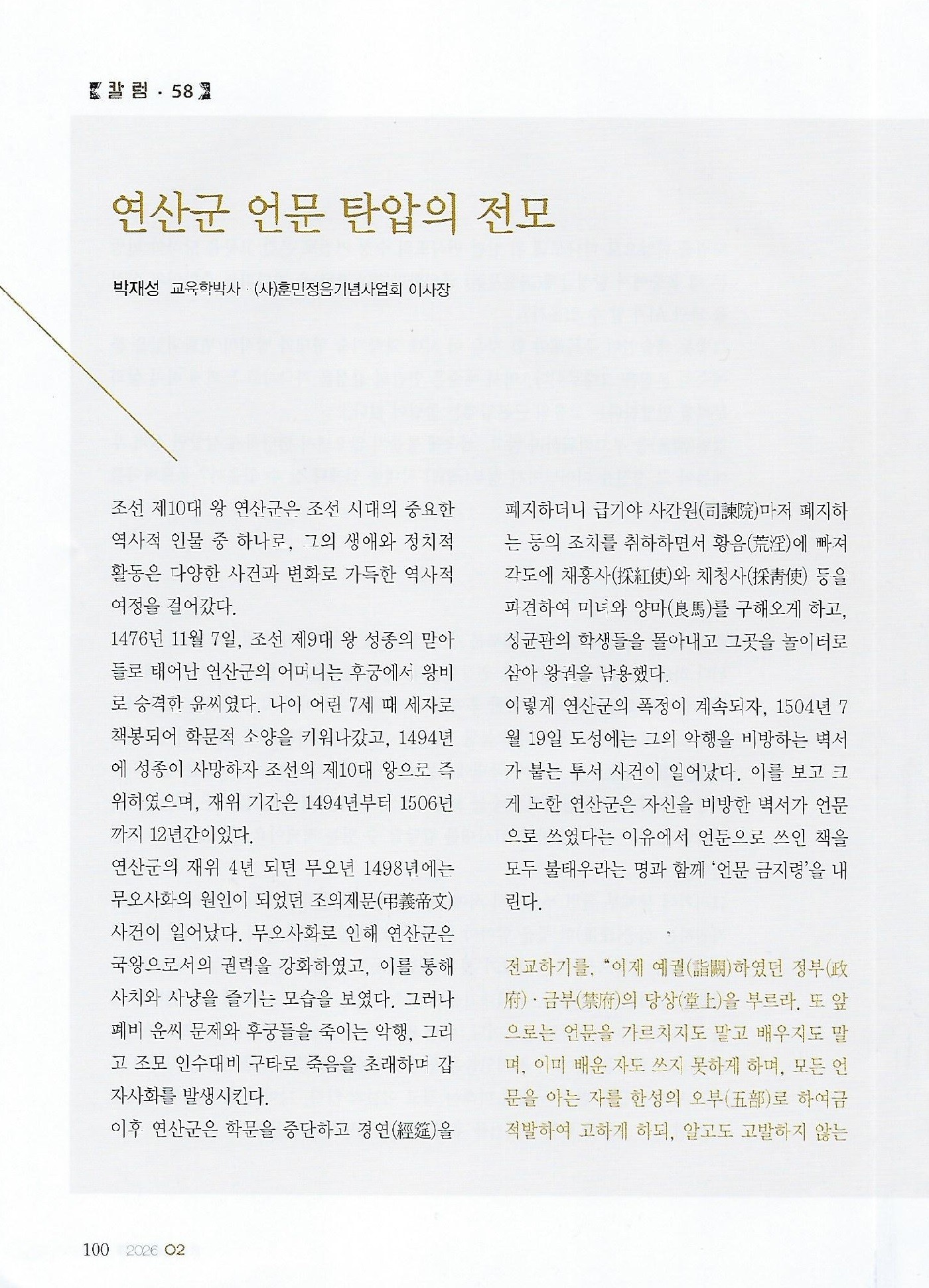 [월간서예문인화] 연산군 언문 탄압의 전모