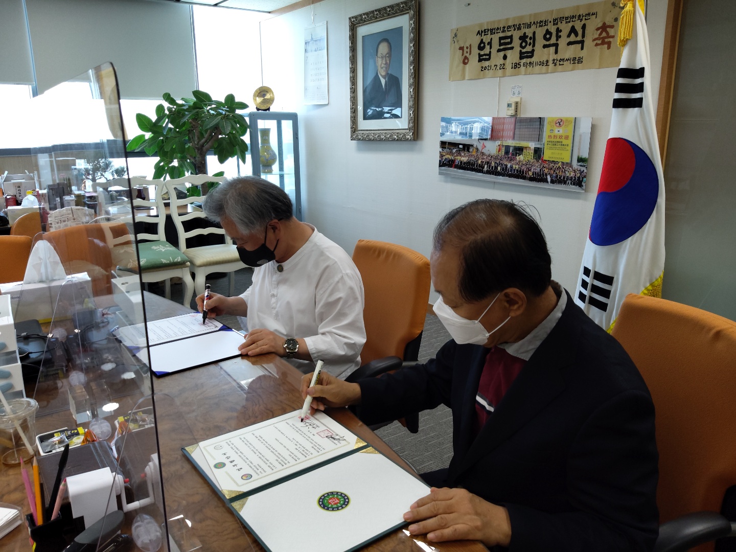 ○ 사단법인 훈민정음기념사업회(이사장 박재성)는 법무법인 황앤씨로펌(공동대표 황우여, 홍일표)과 훈민정음기념사업회의 법률지원과 소송 등의 업무와 관련한 지원을 위한 업무협약(MOU)을 2021년 7월 22일(목) 오후 2시 인천광역시 연수구 센트럴로 263 IBS타워 11층 6호 황앤씨로펌 사무소에서 체결했다.