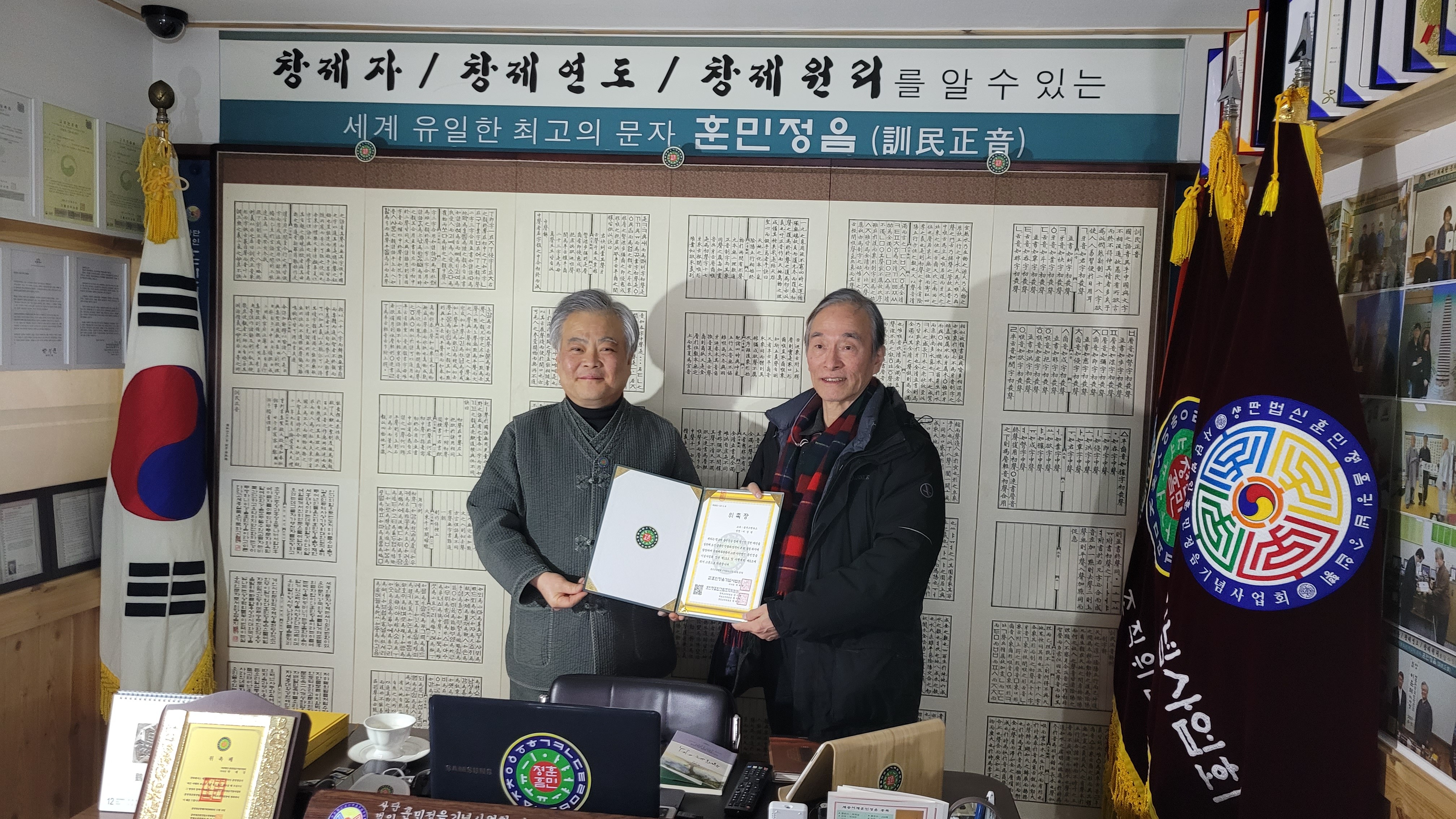 이에 박 이사장은 즉석에서 이상면 박사에게 고문 위촉장을 수여한 뒤 훈민정음 뱃지를 달아주고 약 2시간여 동안 환담을 하였다.<이금로 사무처장>
