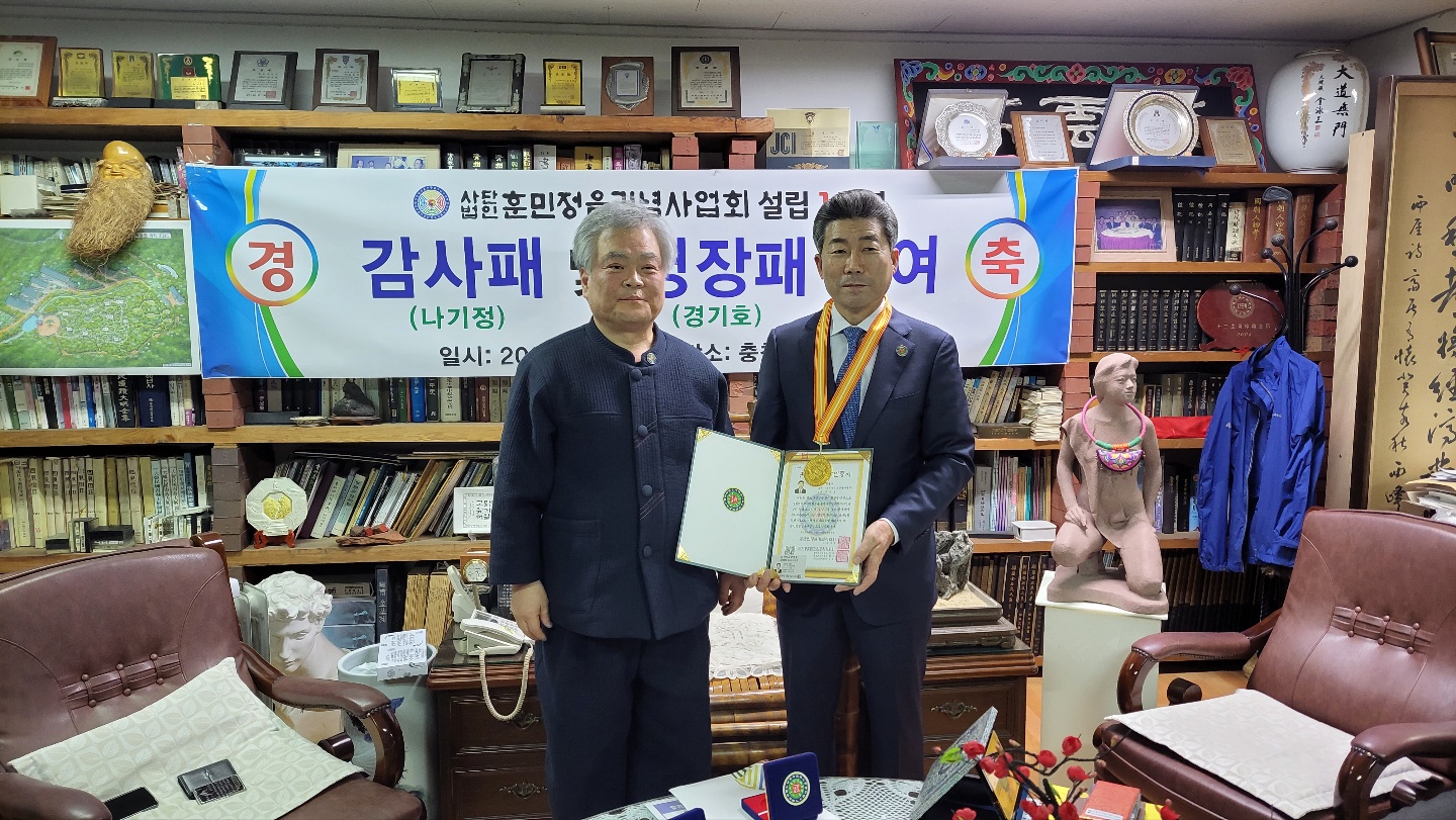 2022년 3월 11일(금) 오후 6시 30분 사단법인 훈민정음기념사업회 충북지회(지회장 김동연) 사무실에서 본 회 박재성 이사장은 법인 설립 1주년을 기념하여 그동안 훈민정음탑 건립과 훈민정음대학원대학교 설립부지를 무상 기증한 나기정 사단법인 세계직지문화협회 회장(전 청주시장)에게 회원들의 감사의 마음을 담아서 감사패를 수여하였다. 이와 함께 경기호 훈민정음전통주명장에게 명장 인증패를 수여하였한 후 참석자들과 만찬을 하면서 훈민정음기념사업회의 발전 방향에 대해 깊이 있는 대화를 나누었다. 이날 감사패 및 인증패 수여식을 축하해 주기 위하여 박근영 공동운영위원장, 이동주 훈정회 기획처장, 이금로 훈정회 사무처장과 장현석 훈민정음고건축 명장, 김동연 훈민정음서예명장, 조성옥 훈민정음석각명장, 박영덕 훈민정음각자명장 등 청주지역에서 활동하는 훈민정음 명장은 물론 제6기 훈민정음해설사 자격을 취득한 김제홍 강릉영동대학교 전 총장, 장정수 세종탁주 대표, 정정옥 강릉영동대호텔리조트과 교수, 이한나 청주시의회 홍보팀 공무원 등이 함께 했다.
